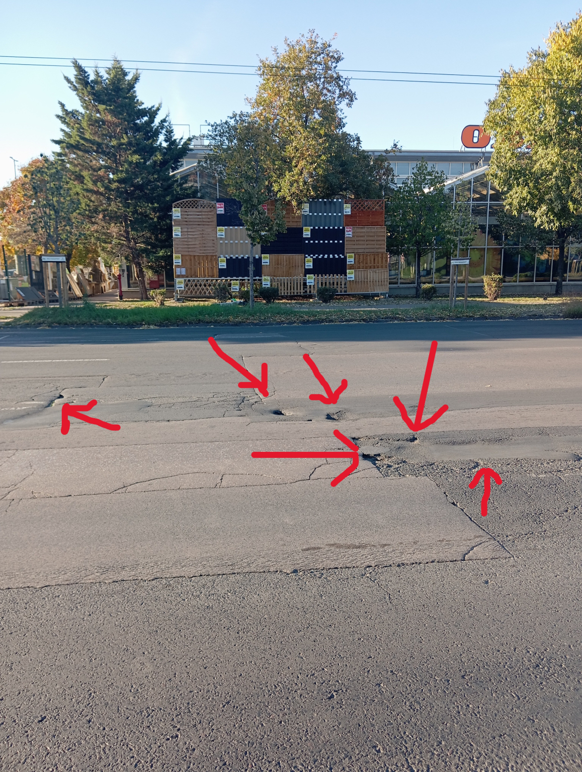 Kérem az illetékest, hogy a képen látható kátyúkat legyen szíves betömni!