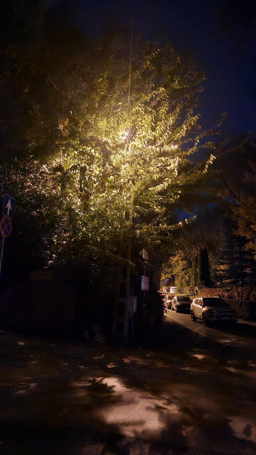 Fa lombkoronája eltakarja az utcai lámpa fényét