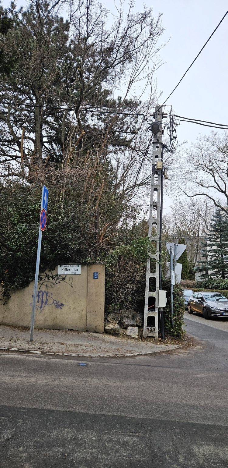 A Fillér és Lévay utca sarkán lévő utcai lámpa fényét egy fa lombkoronája teljesen eltakarja, ami fényhiányt okoz és ezáltal balesetveszélyes is.