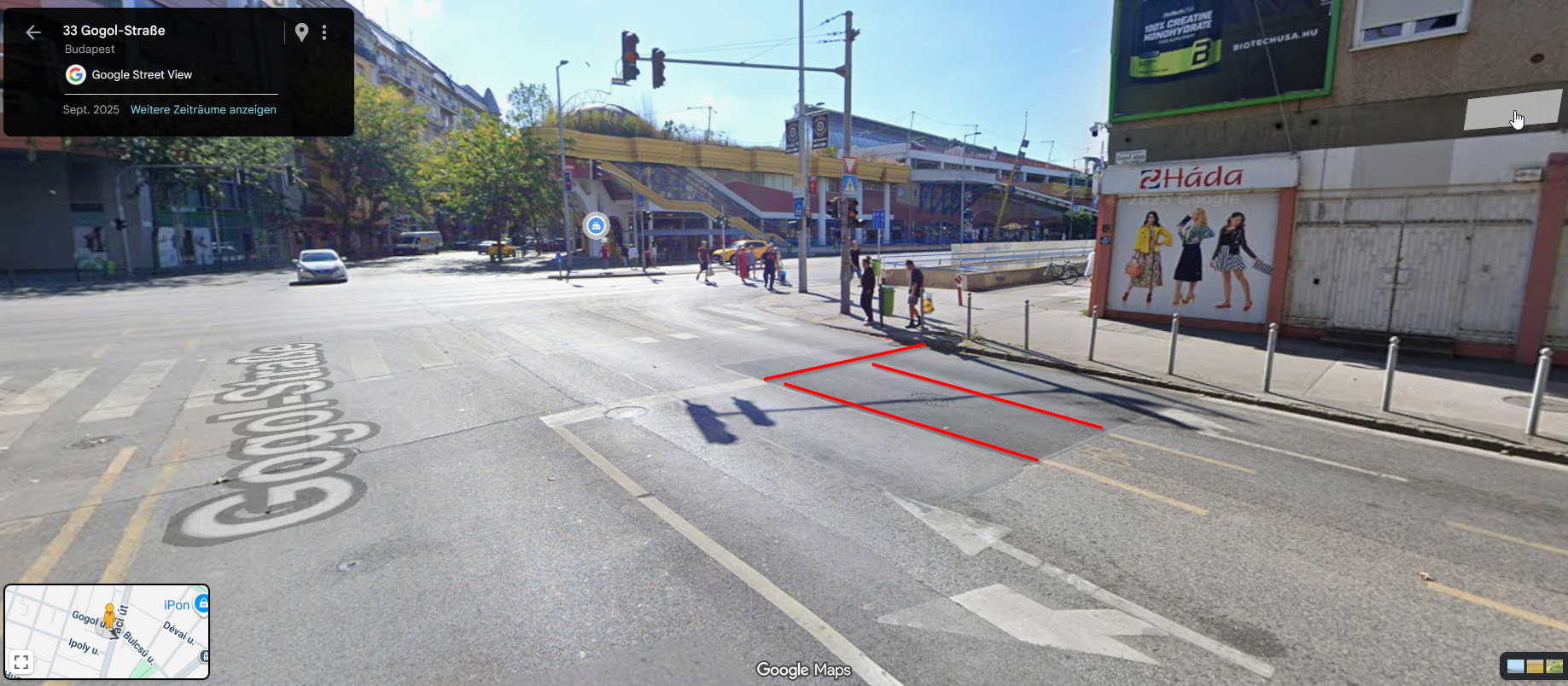 A Gogol utcában nem kerültek helyreállításra az útburkolati jelek a közműépítési munkálatok után. Nem tudom, hogy ezt a Budapest Közút műszaki ellenőre így hogy vehett át...