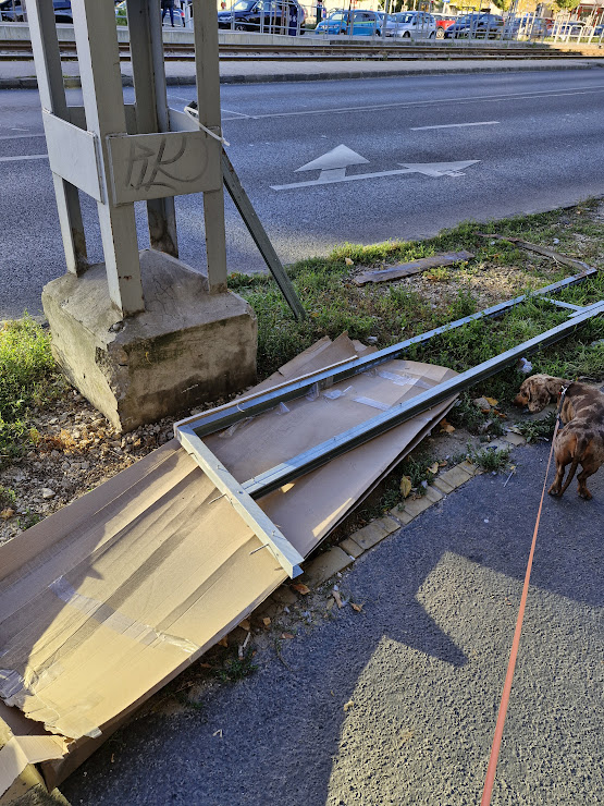 Vashulladék, lom van kidobva a Nagy Lajos király útján, a Szugló utcai kereszteződés közelében. Szemben a LIDL áruházzal. Kérjük az elszállítását.