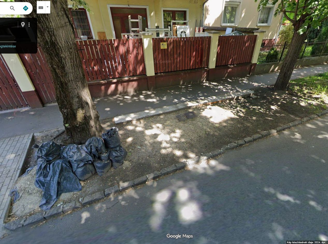 A megjelölt ház előtt, évek óta sittes zsákok vannak.