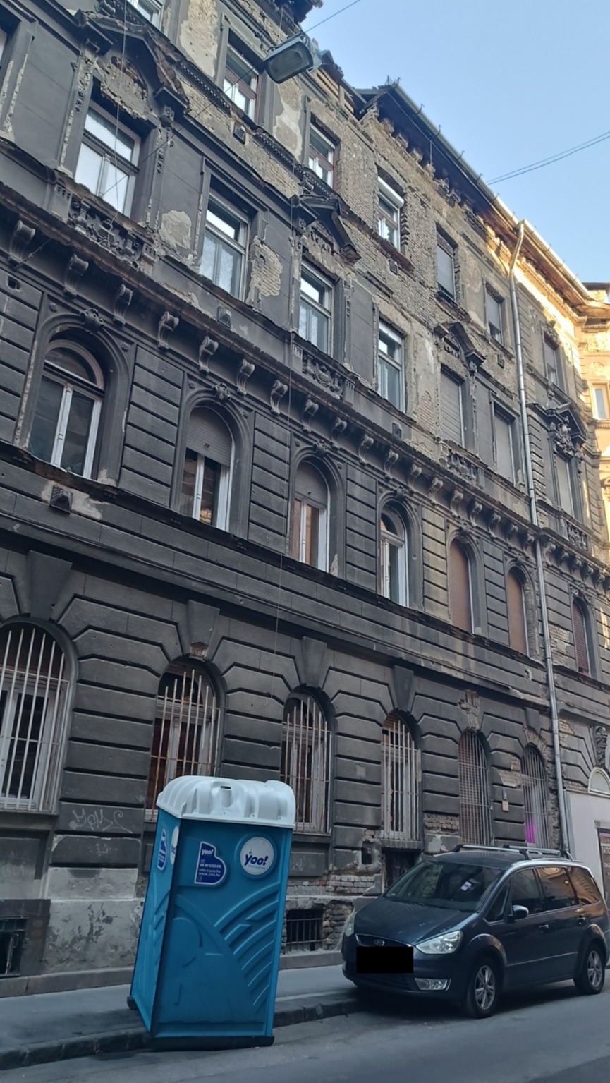 A Dessewffy 49 számmal szemben itt hagytak egy kék toi toi wc blokkot, már "jön le" a járdáról ...