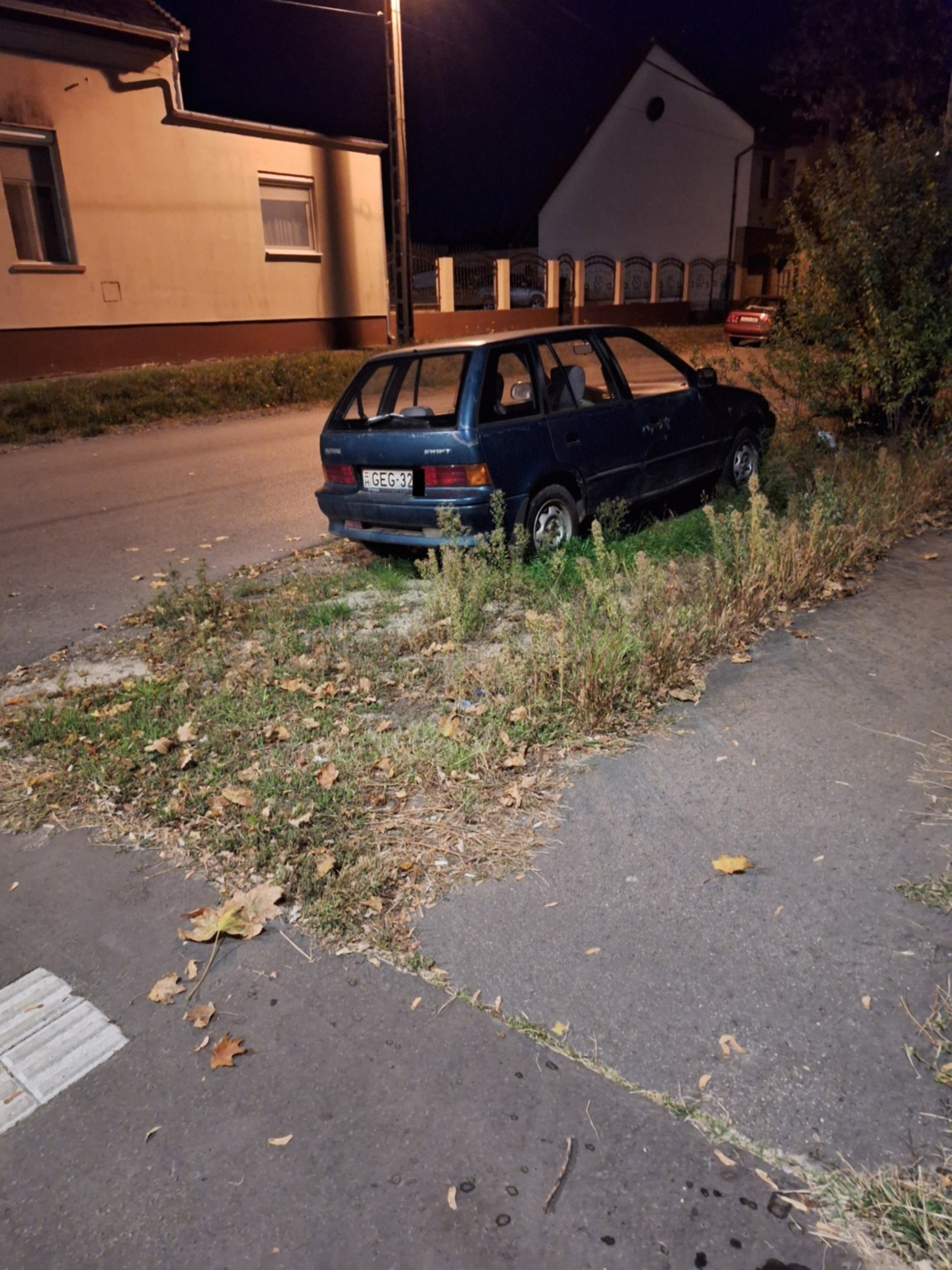 Az autó legalább fél éve áll itt, de az is lehet régebb óta. A műszakija is közel 3 hónapja lejárt. Nem úgy tűnik, mint amit forgalomba terveznek helyezni. De akkor miért nem telken belül tárolják? A füves területen úgy tudom amúgy sem lehet parkolni. Igaz Soroksáron ezt nem divat szankcionálni.
