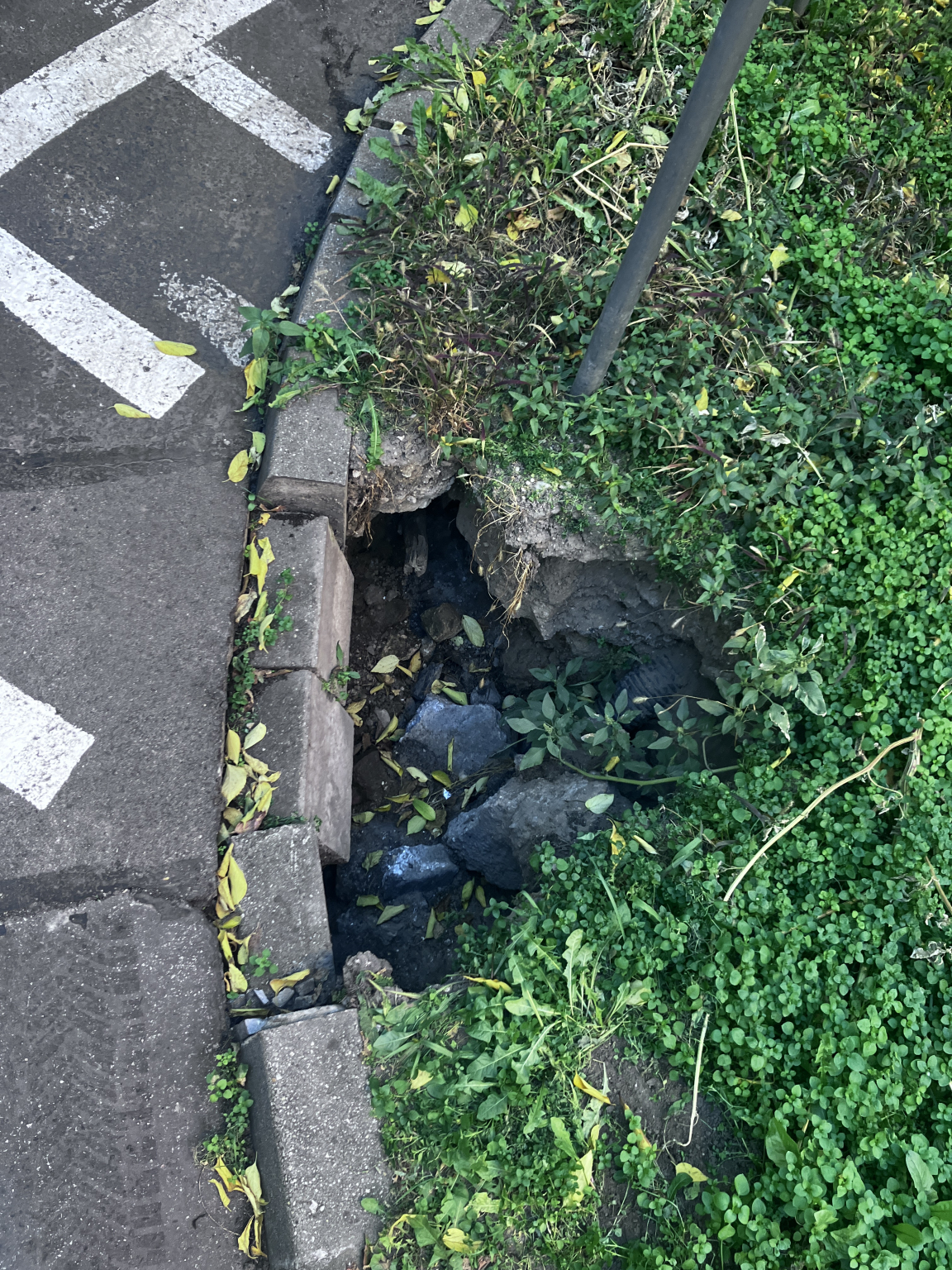 Óriási lyuk van a Zuglói Önkormányzat épülete mellett, valószínűleg alámosódott az út.