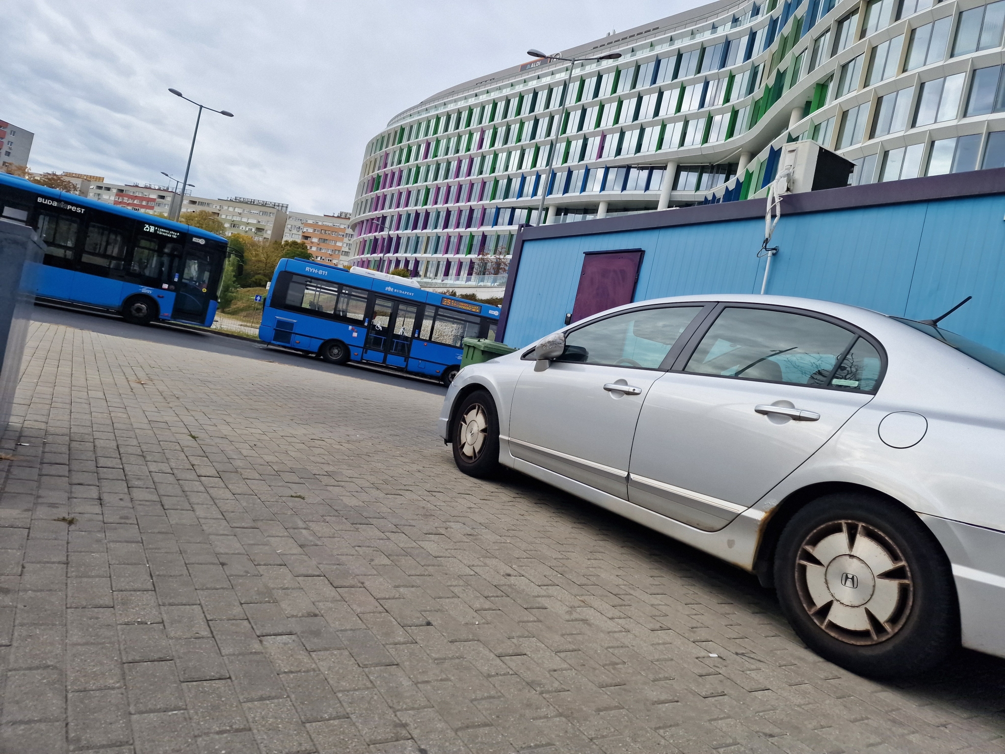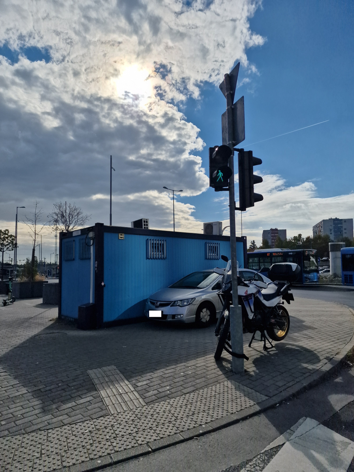 A képen látható Honda autó rendszeresen a kék konténer mellett várakozik, pedig ott van mögötte a P+R parkoló. A motor is a lehető legrosszabb helyen van ott hagyva a zebránál. Ha másképp nem megy, szeretnék kérni parkolásgátlót a területre.