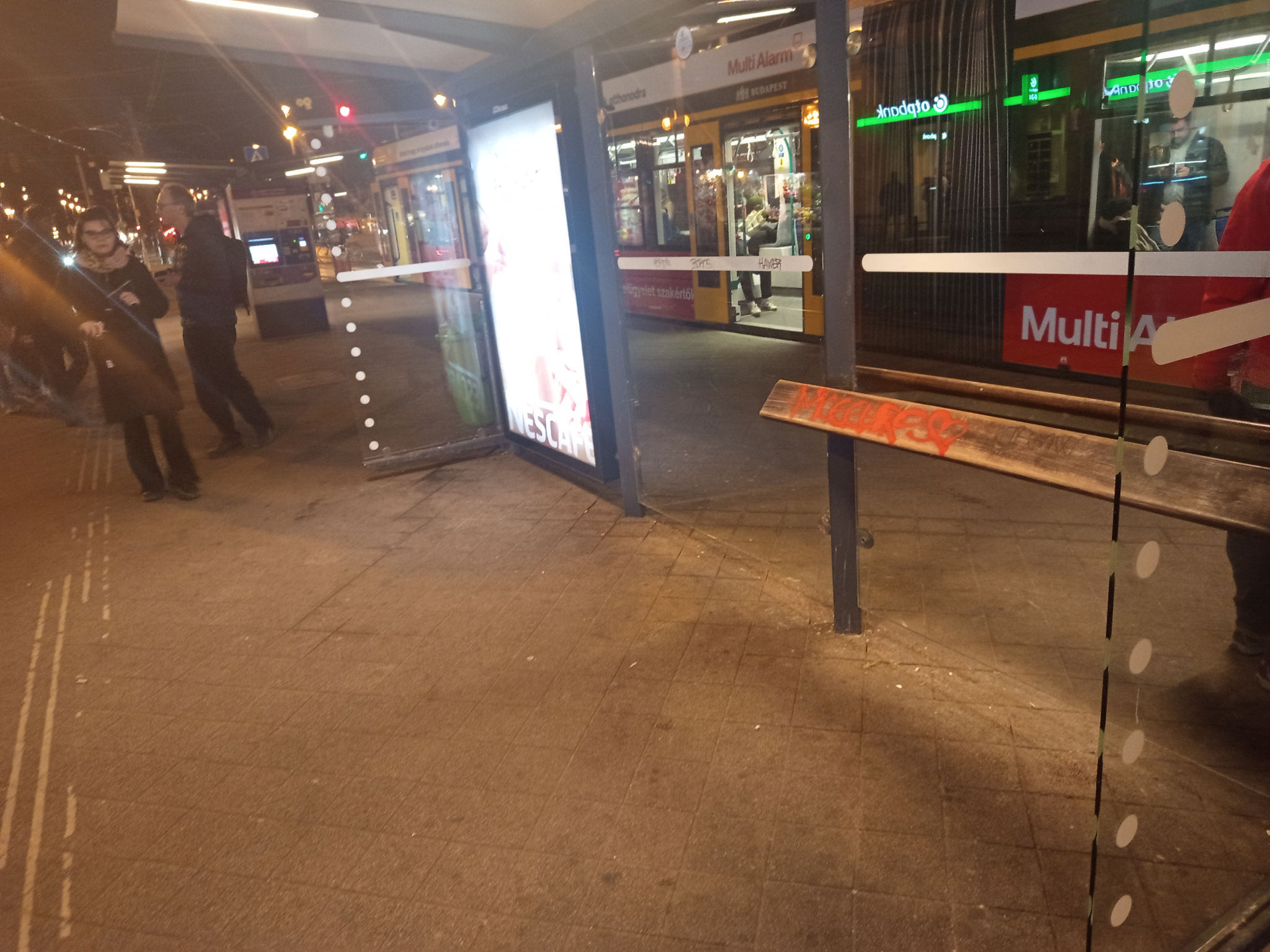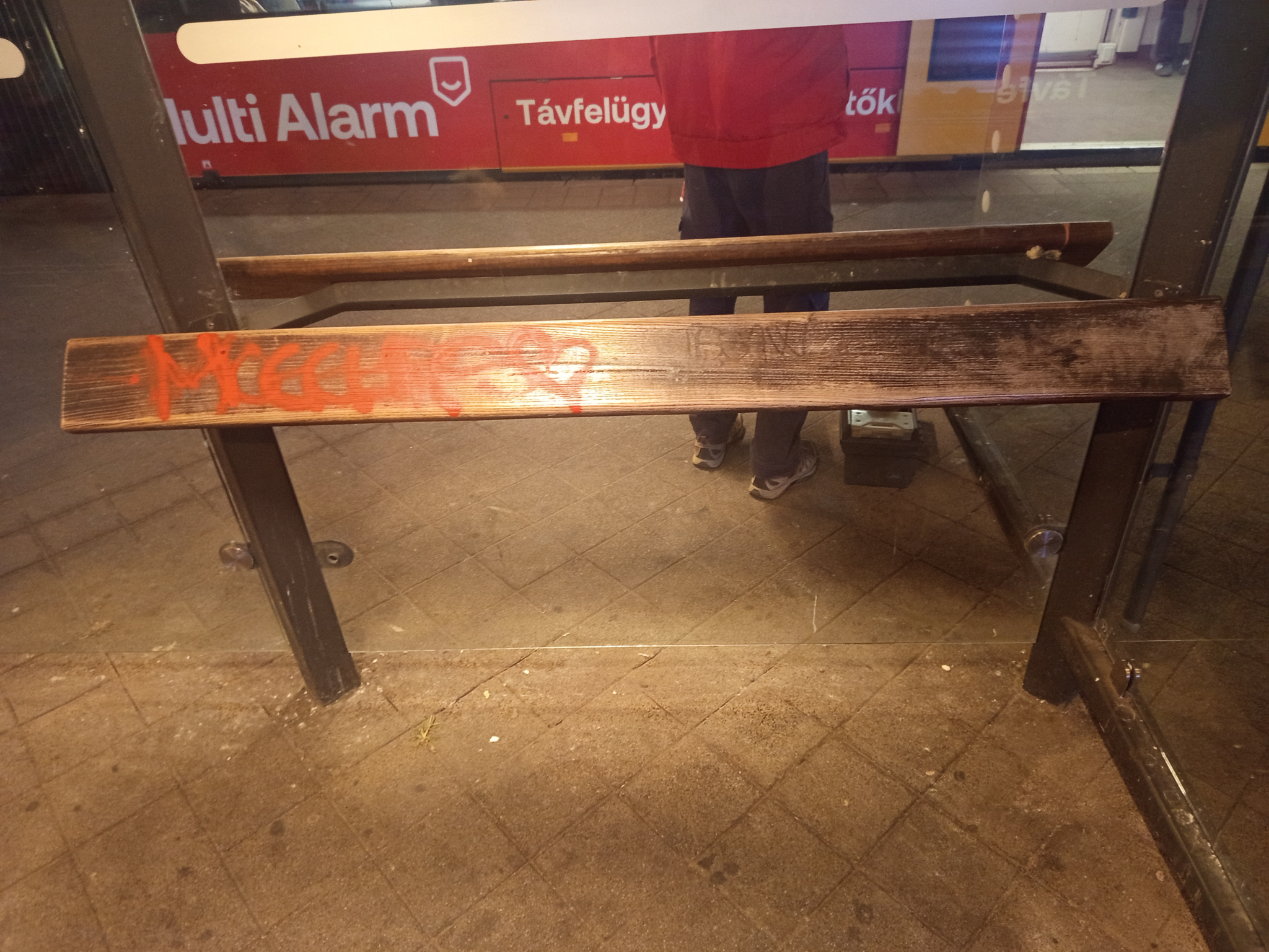 Kettő darab graffitis kopott támaszkodó! Megkérném az illetékest hogy gondoskodjon a cseréjéről! Előre is köszönöm!