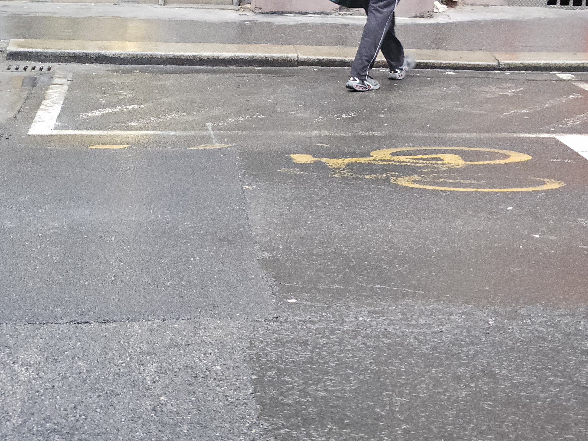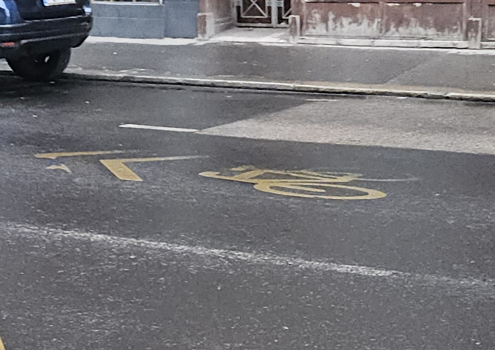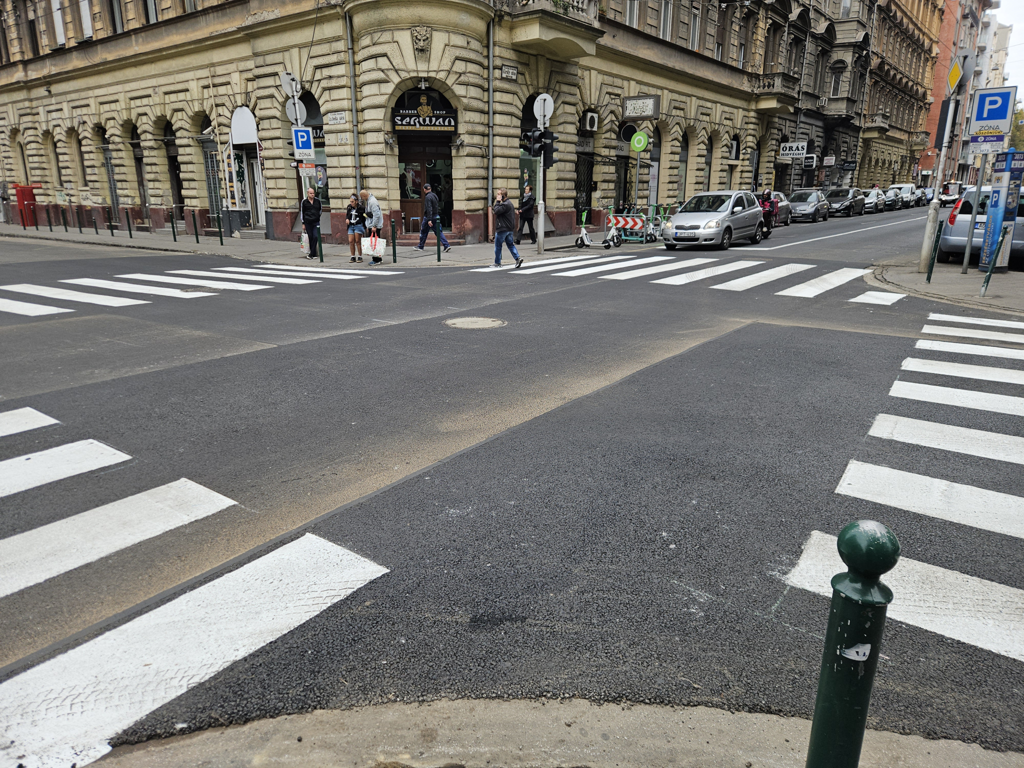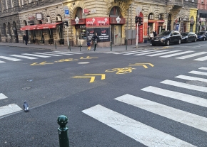 Király utca és Izabella kereszteződését felújították, azonban a kerékpáros nyom nem került pótlásra és az utca több pontján is igen csak kopottá váltak ezek az útburkolati jelek.