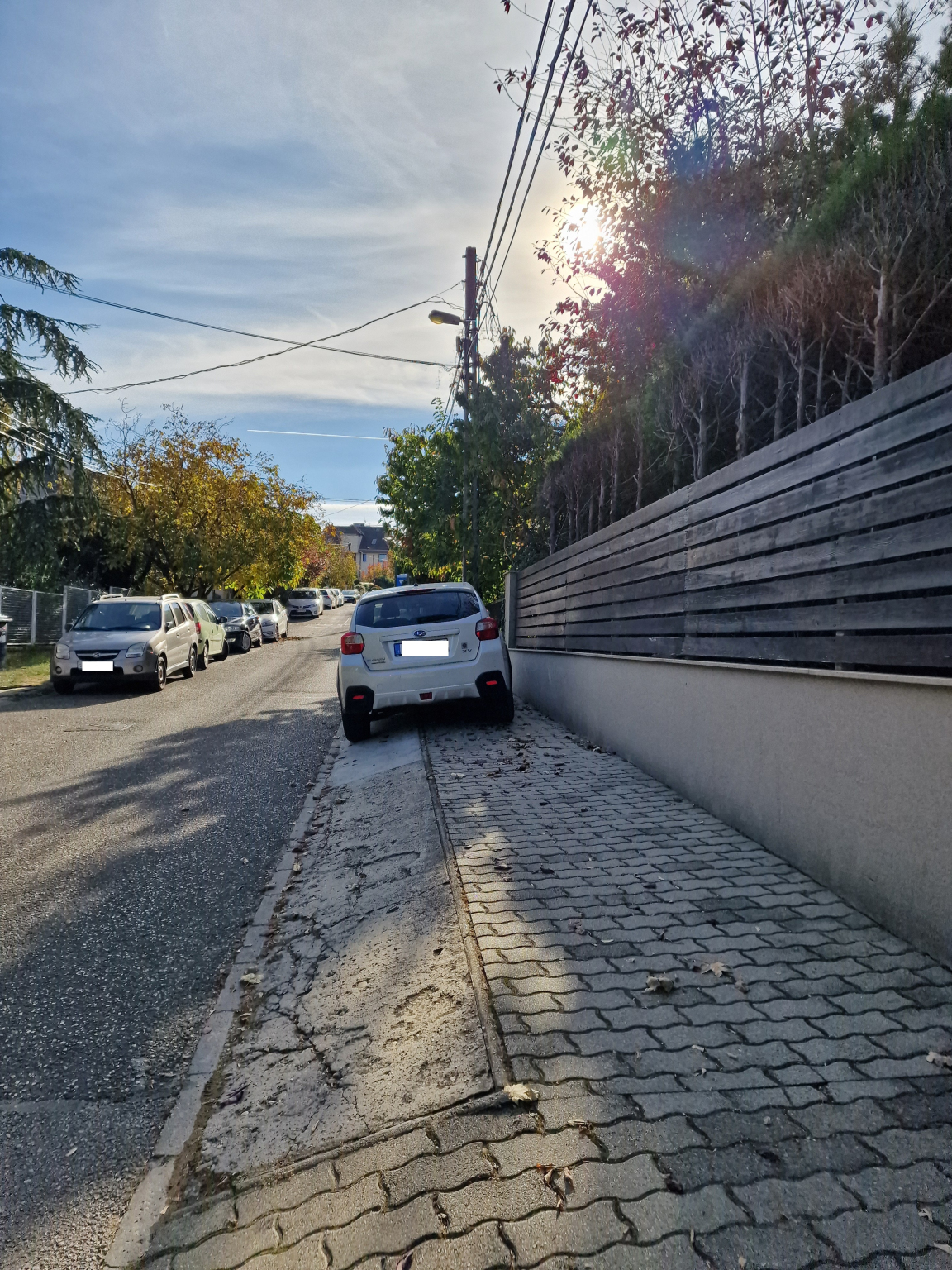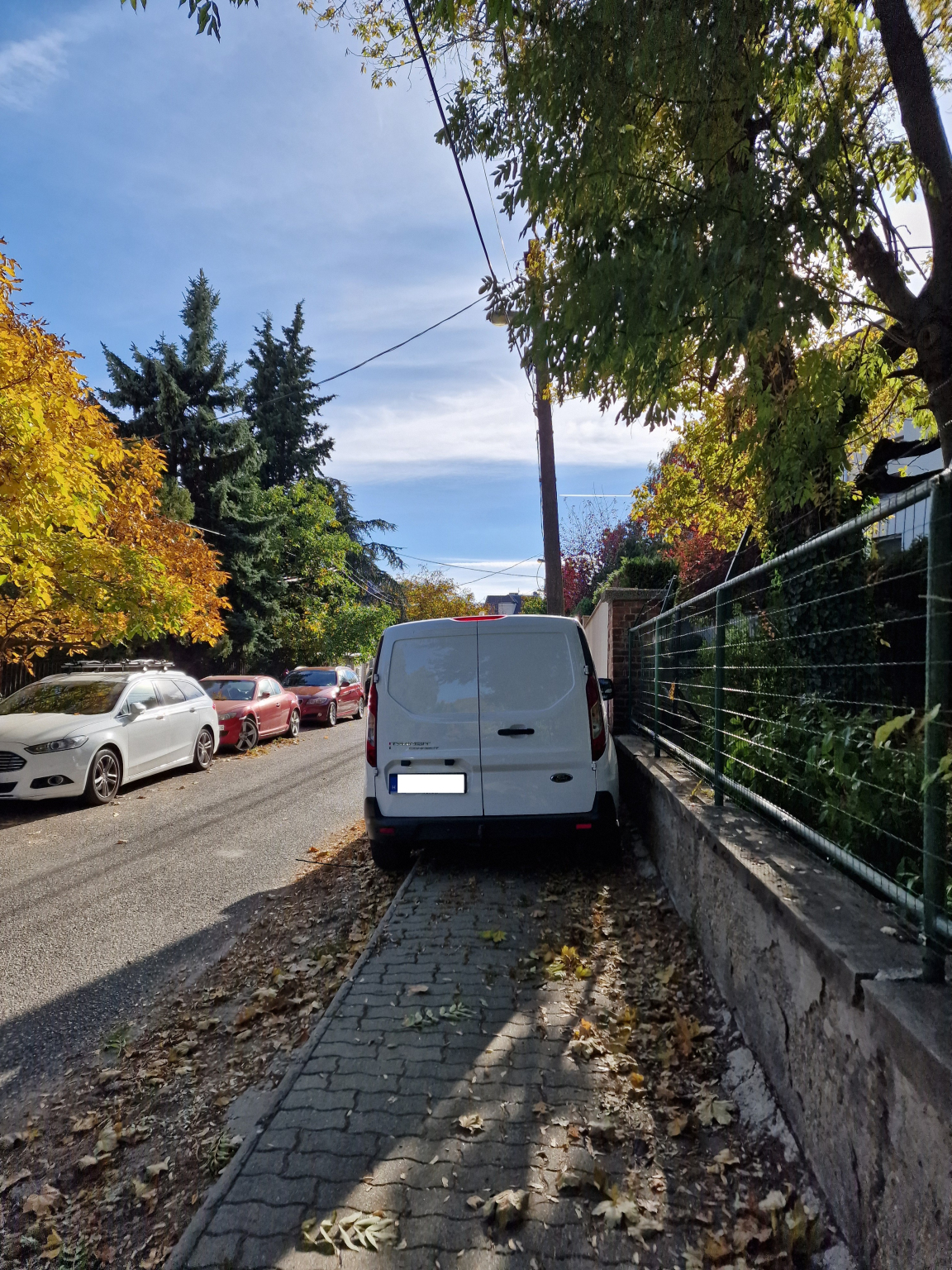 A Bodajk utcában nem lehet a járdán közlekedni gyalog, mert autók várakoznak mindkét oldalon. A képek a Bodajk utca 19-nél és Bodajk utca 30-nál készültek.