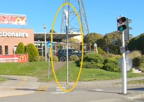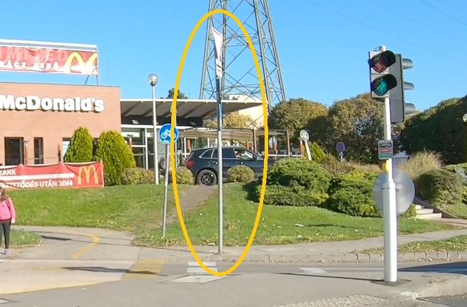 A Gyömrői út - Sibrik Miklós út kereszteződésében, a McDonalds oldalában kidőlt (kidöntötték) a kerékpárútra figyelmeztető (elsőbbséget szabályozó) táblacsoportot.
