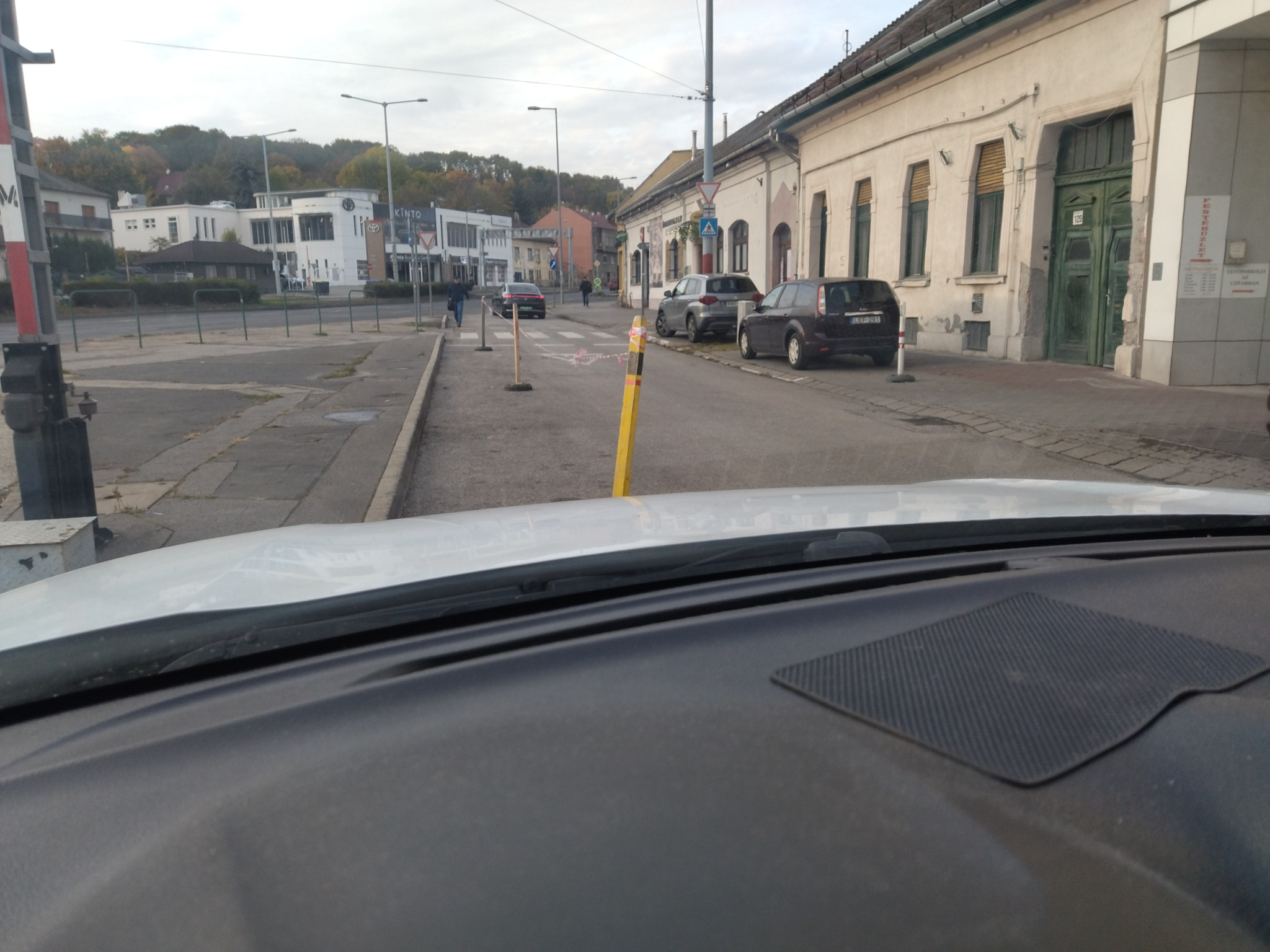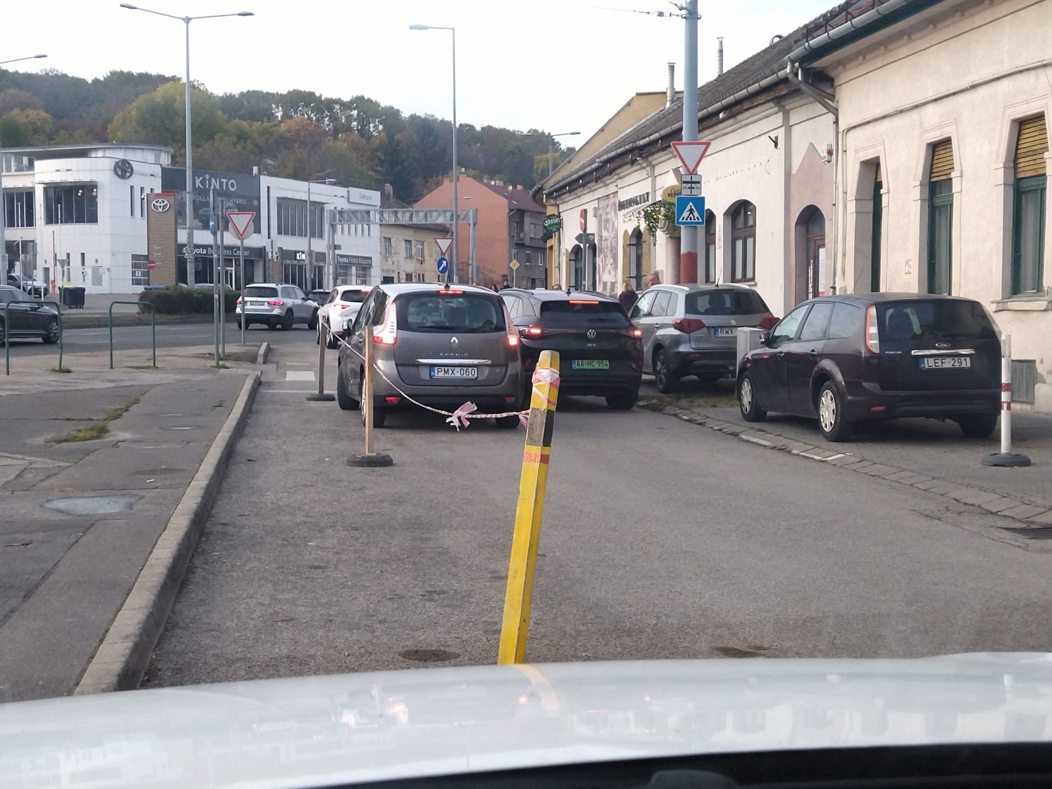 A leszűkített úttest a mellette parkolókkal veszély helyzetet teremt minden nap.