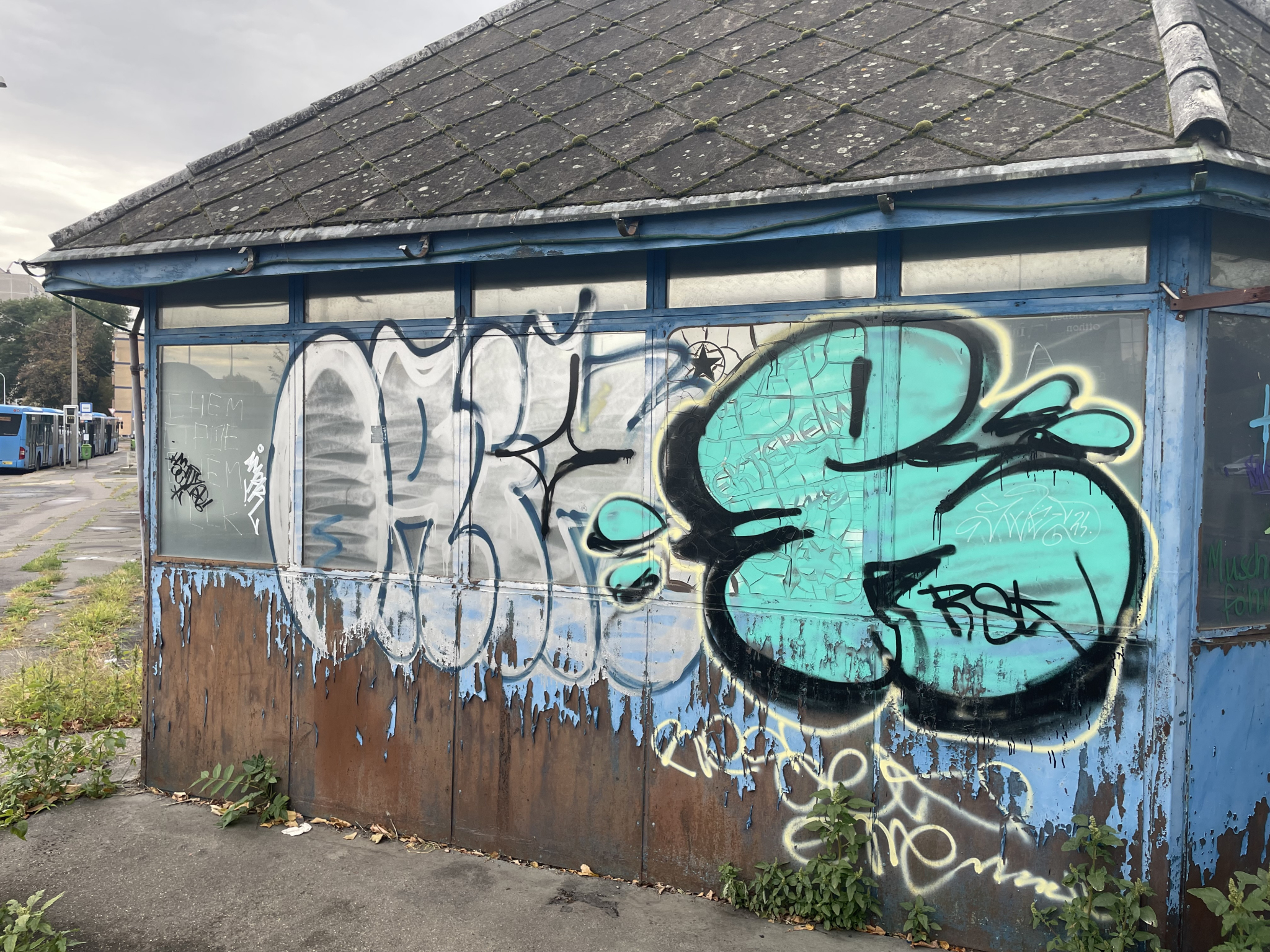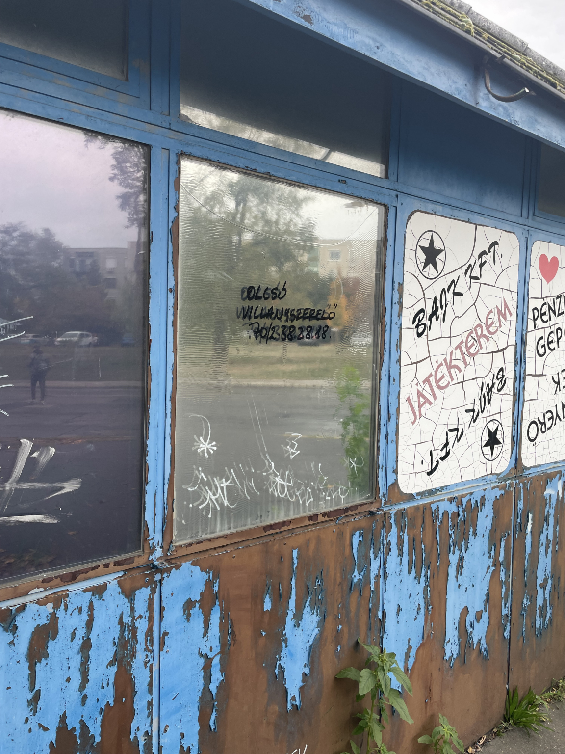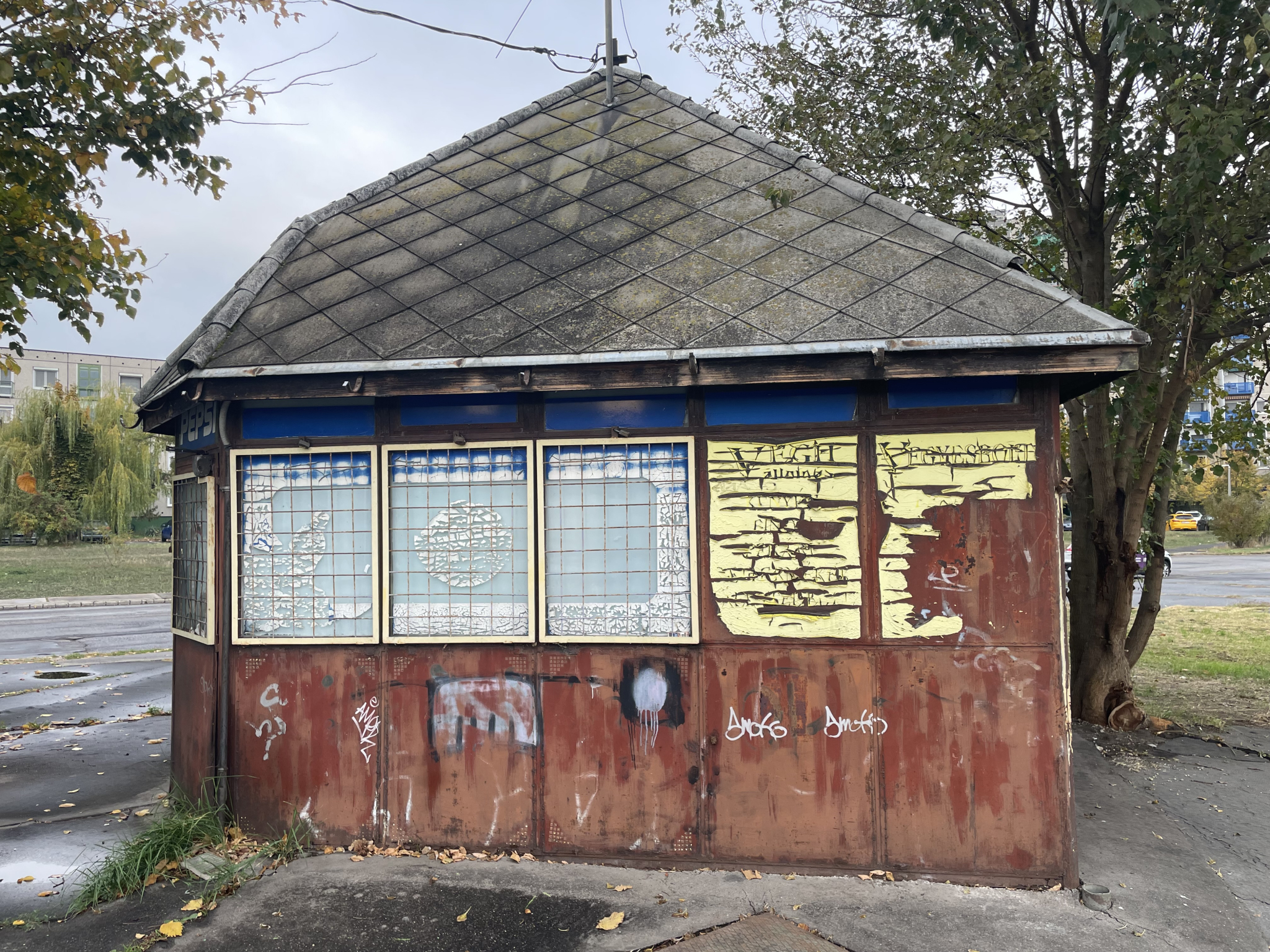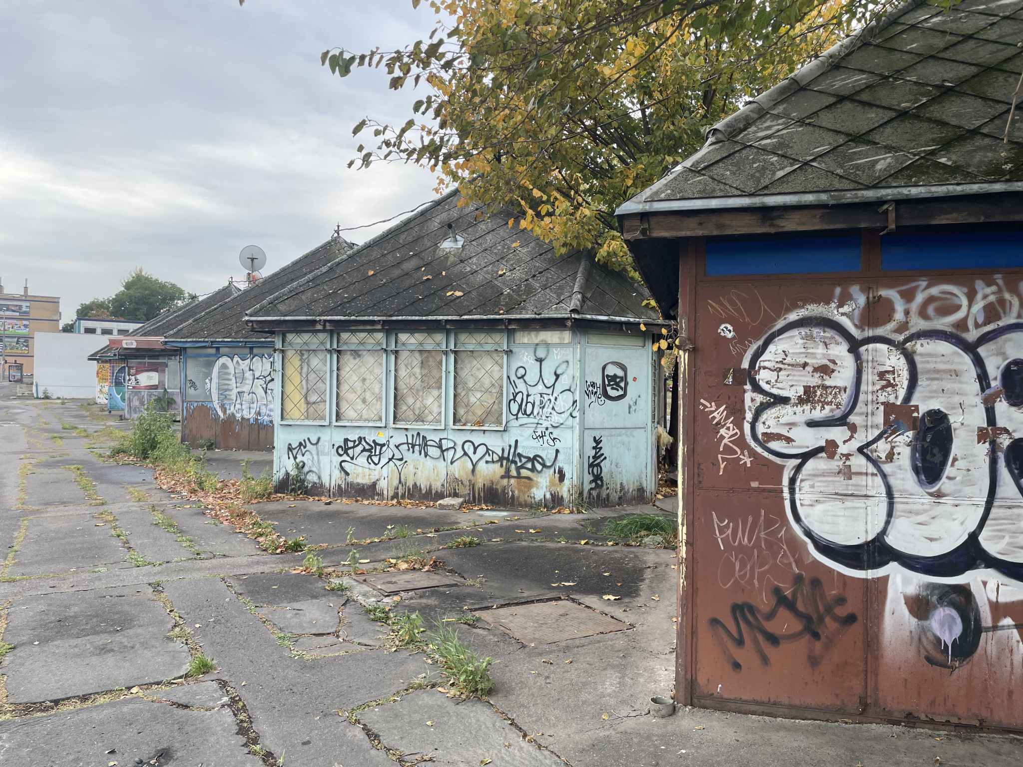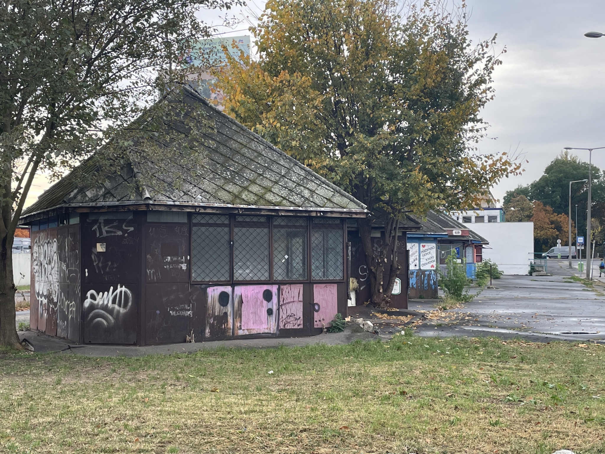Rohadó összefestett bódék Óbudán