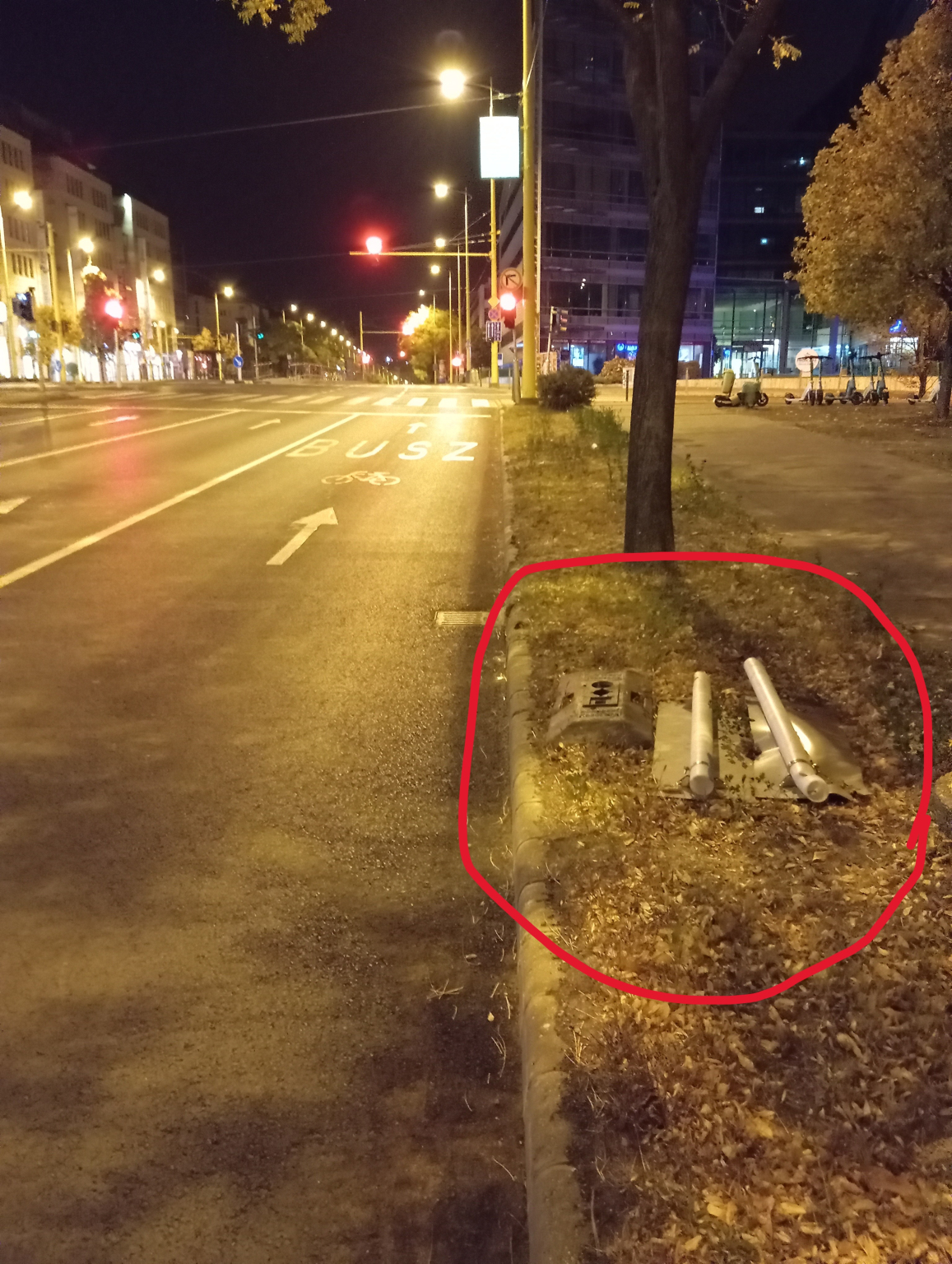 Kérem az illetékest, hogy legyenek szívesek elszállítani a képen látható terelőelemet, amelyet otthagytak a felújítás után!