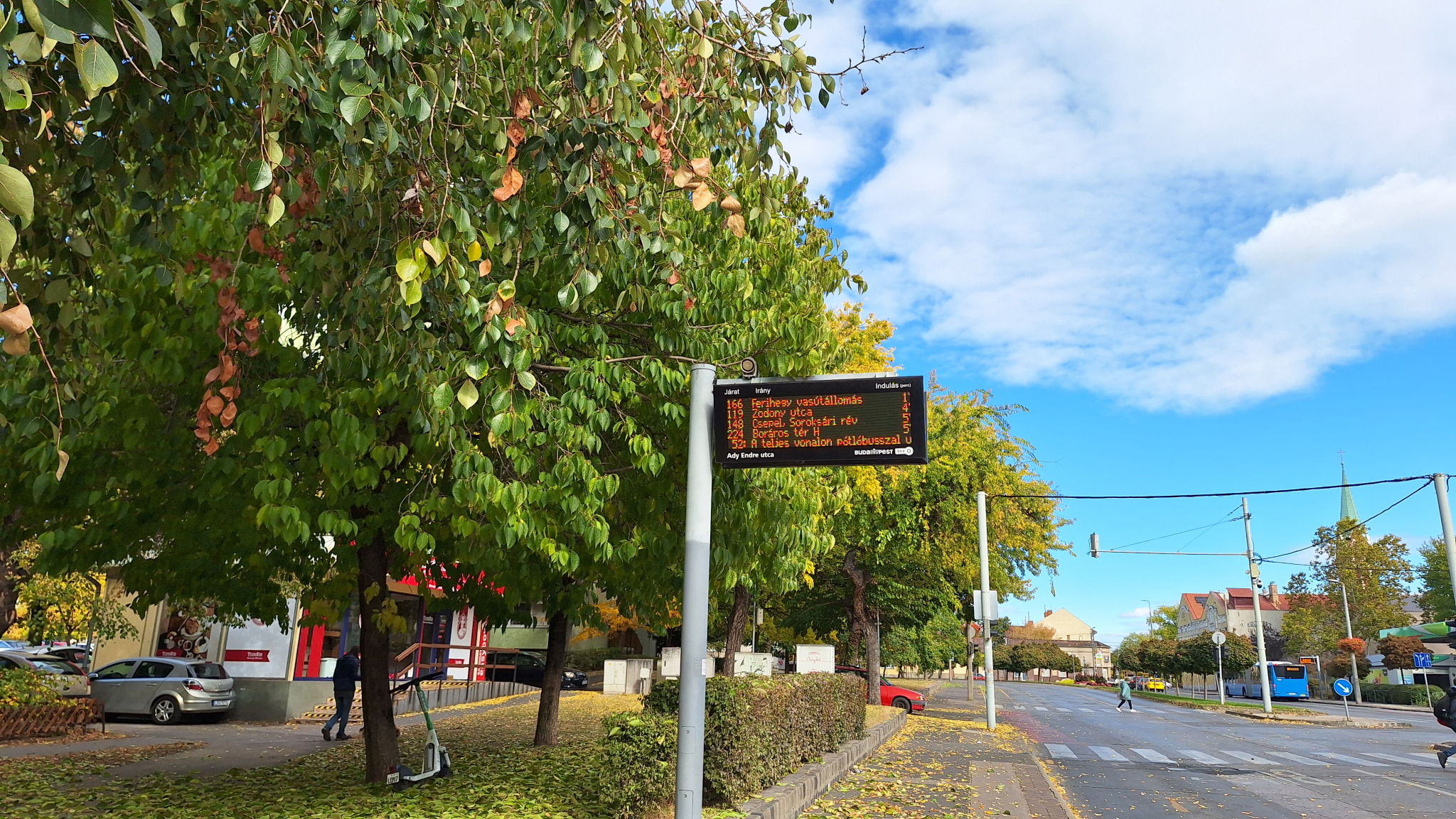 Az Ady Endre utca (Topánka utca) megállóban kitakarja egy fa a FUTÁR kijelzőt. A megálló elejéről, közepéről még a járda szélén sem lehet látni teljesen.