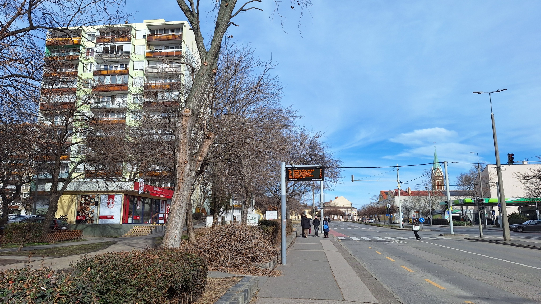 Észrevételét köszönjük! A kijelzőt kitakaró koronájú fa ápolási munkálatait megrendeltük, ami egyben megoldást jelent a kijelző láthatóságának biztosítására is.