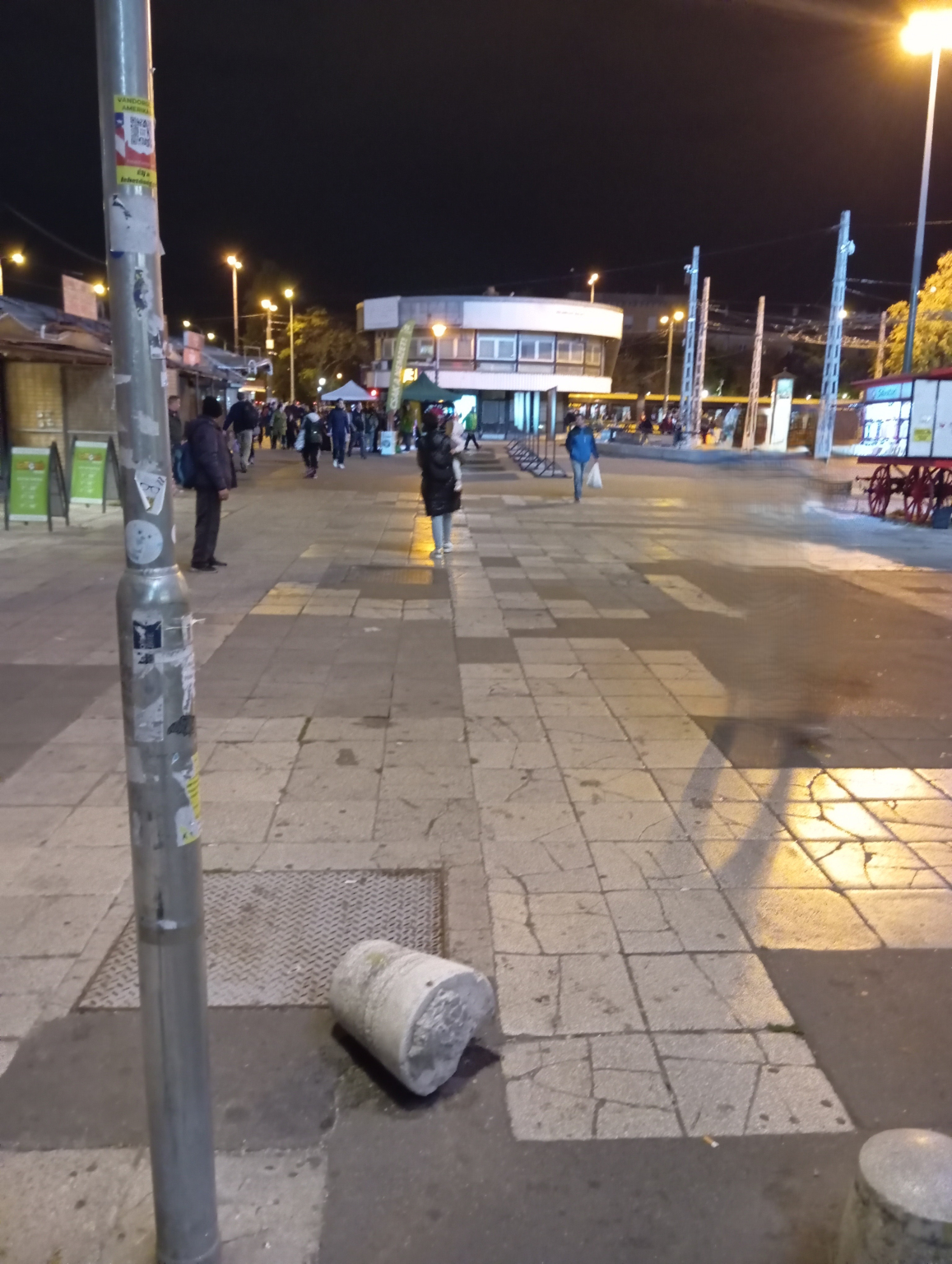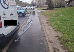 Kérem az illetékest, hogy a képen látható kidőlt pollert legyenek szívesek rögzíteni a helyén!