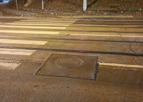 Kérem az illetékest, hogy a képen látható csatornafedelet hozzák egy szintbe az aszfalttal!