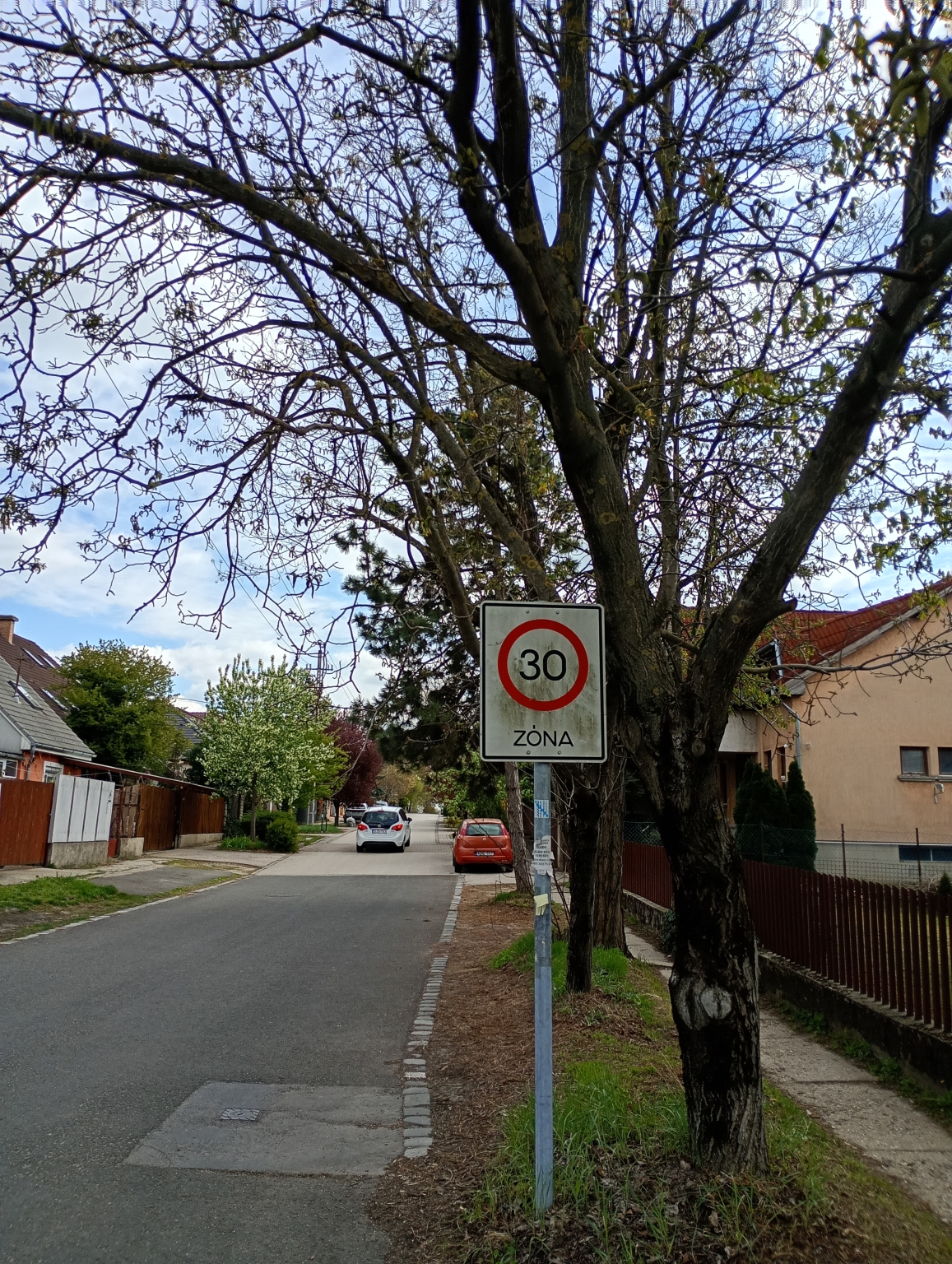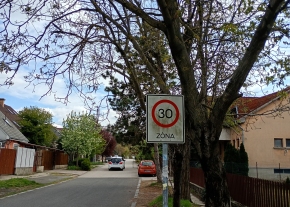Kérem az illetékest, hogy a képen látható fának a táblára lógó részét nyírják meg!