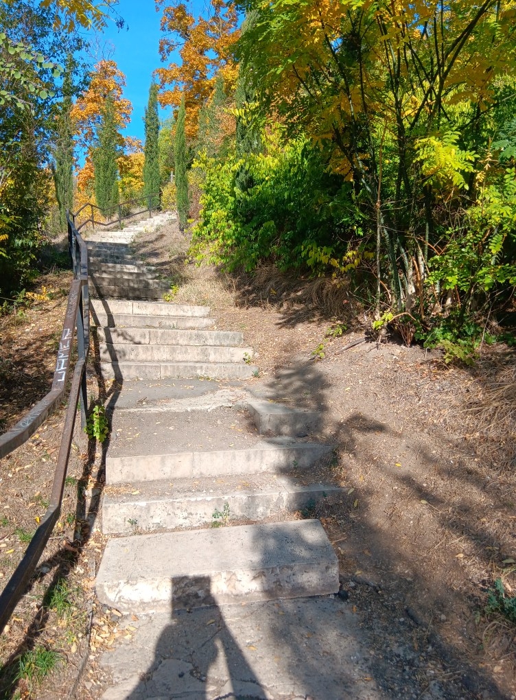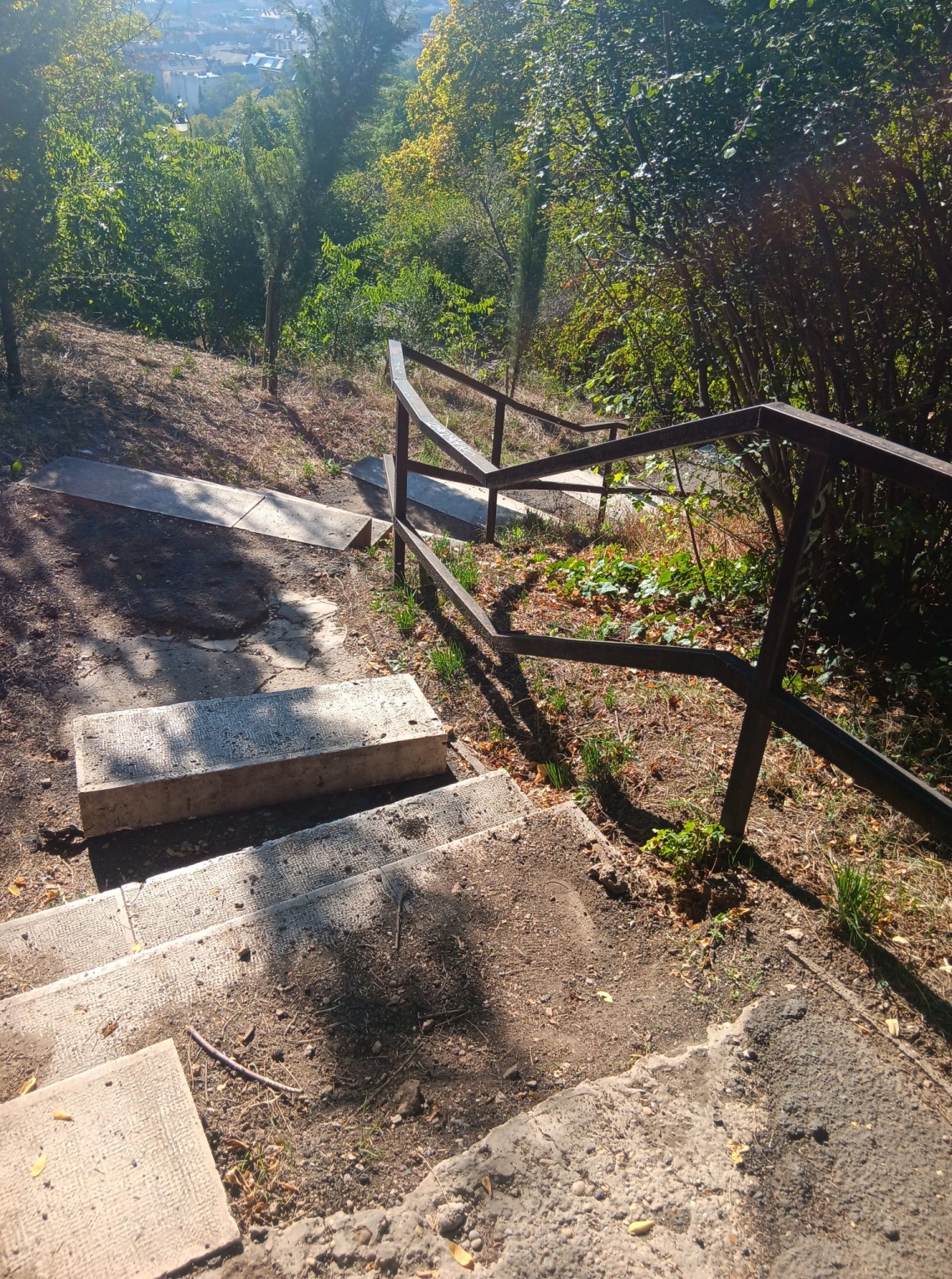A Citadella felé vezető kis ösvényen a Korsók felő egyik lépcső nincs a helyén.