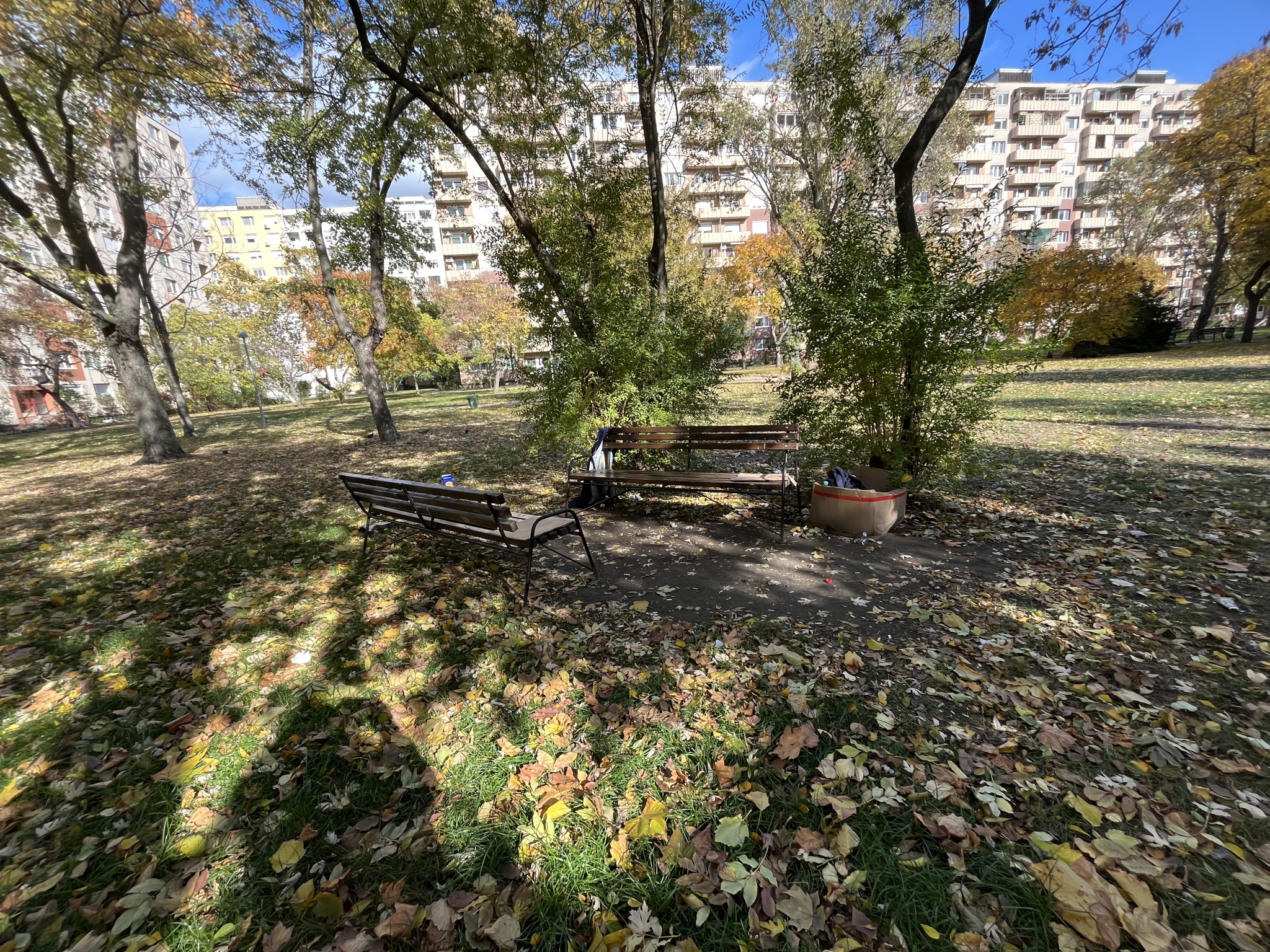 Itt felejtett zöldhulladék, szemét a padok körül