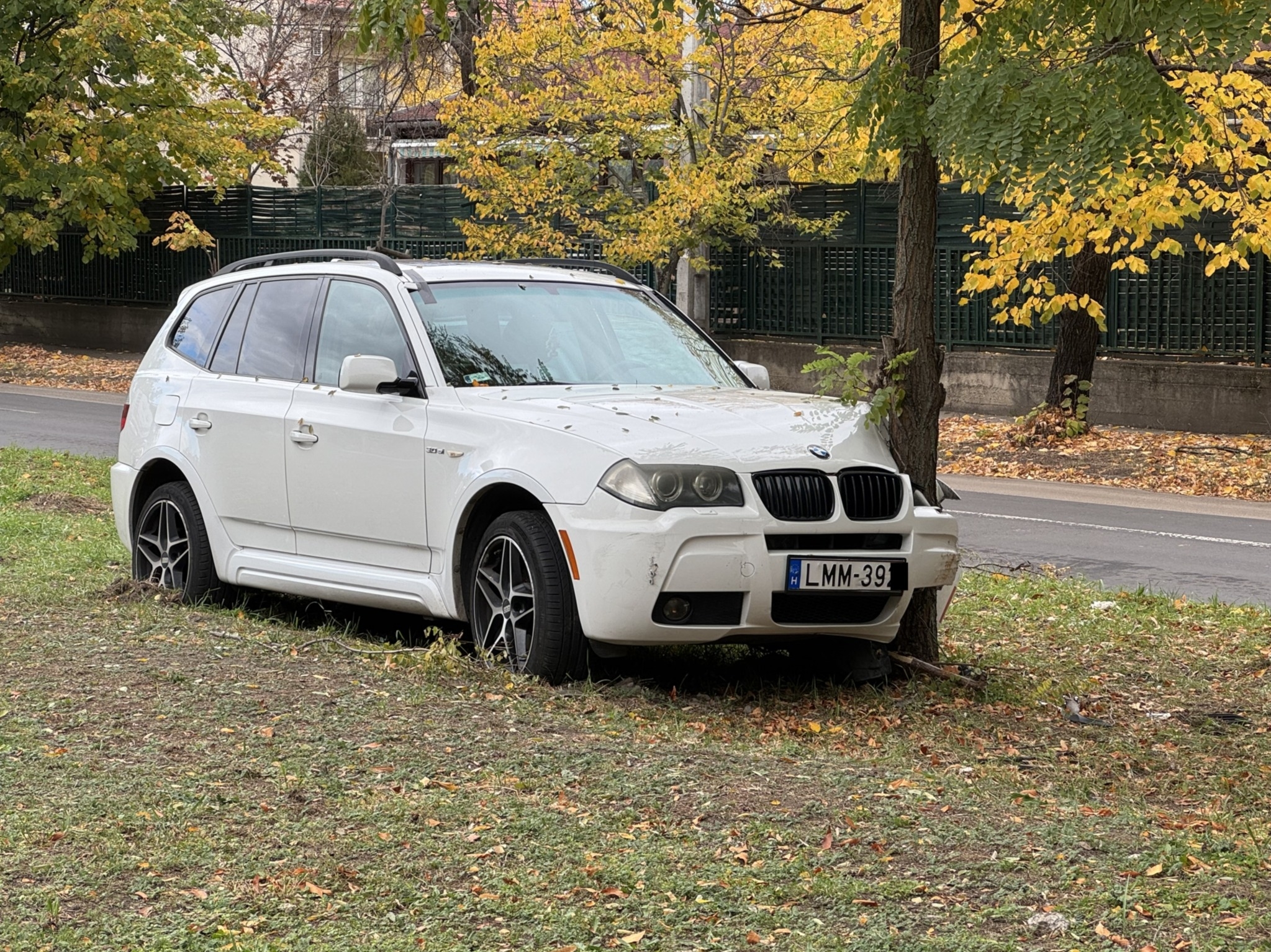 Zuglói kertváros frekventált részén van egy elhagyatott balesetes autó LMM-392 a Rákos Patak mentén.