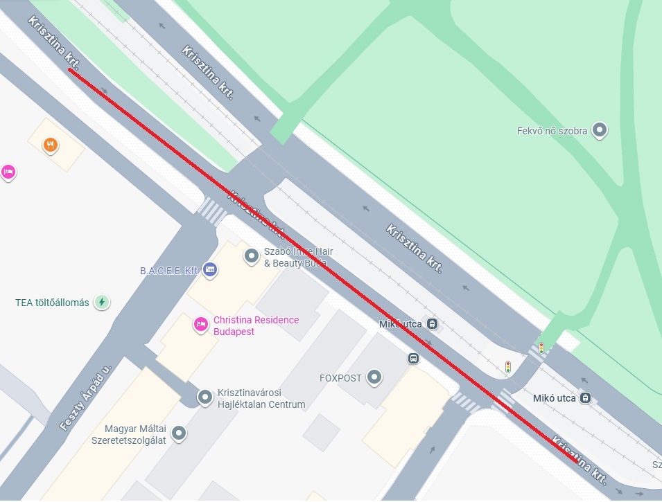 1013, Budapest, Krisztina krt. 41-43 szám alatt található Mercure hoteltől kezdődően, nem világítanak a közterületi lámpák, amik a járdát, és az úttestet világítják meg.