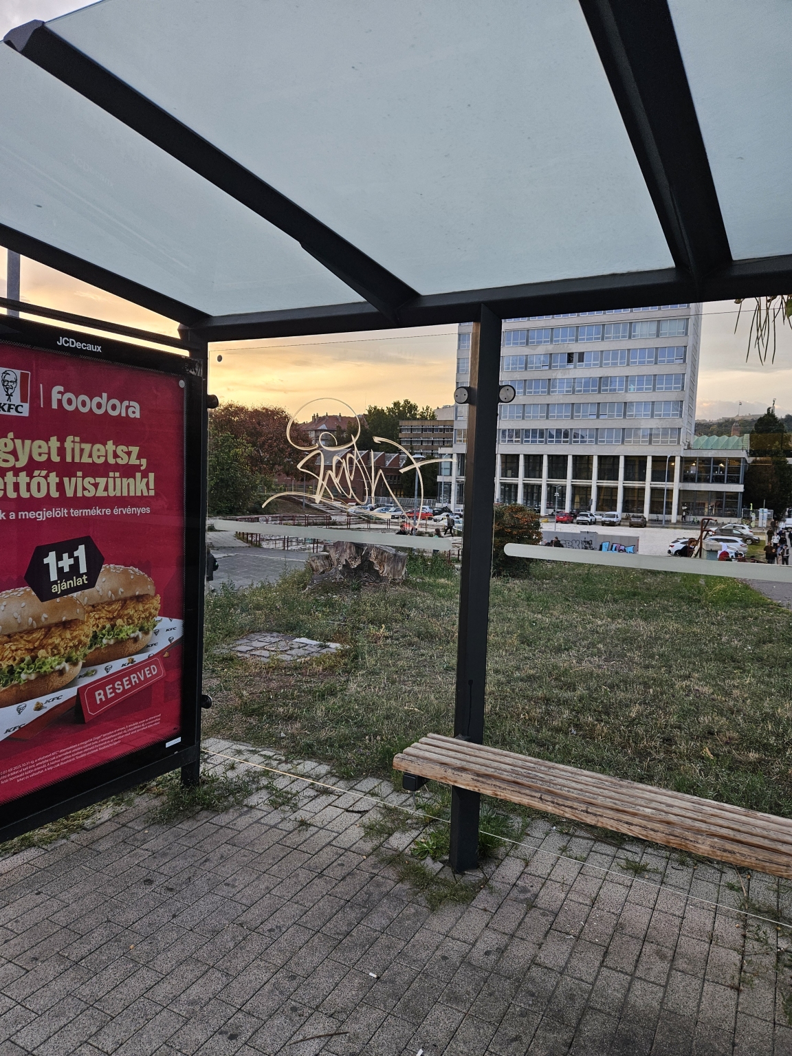 Egy graffiti található a Petőfi híd, budai hídfő buszmegállón.