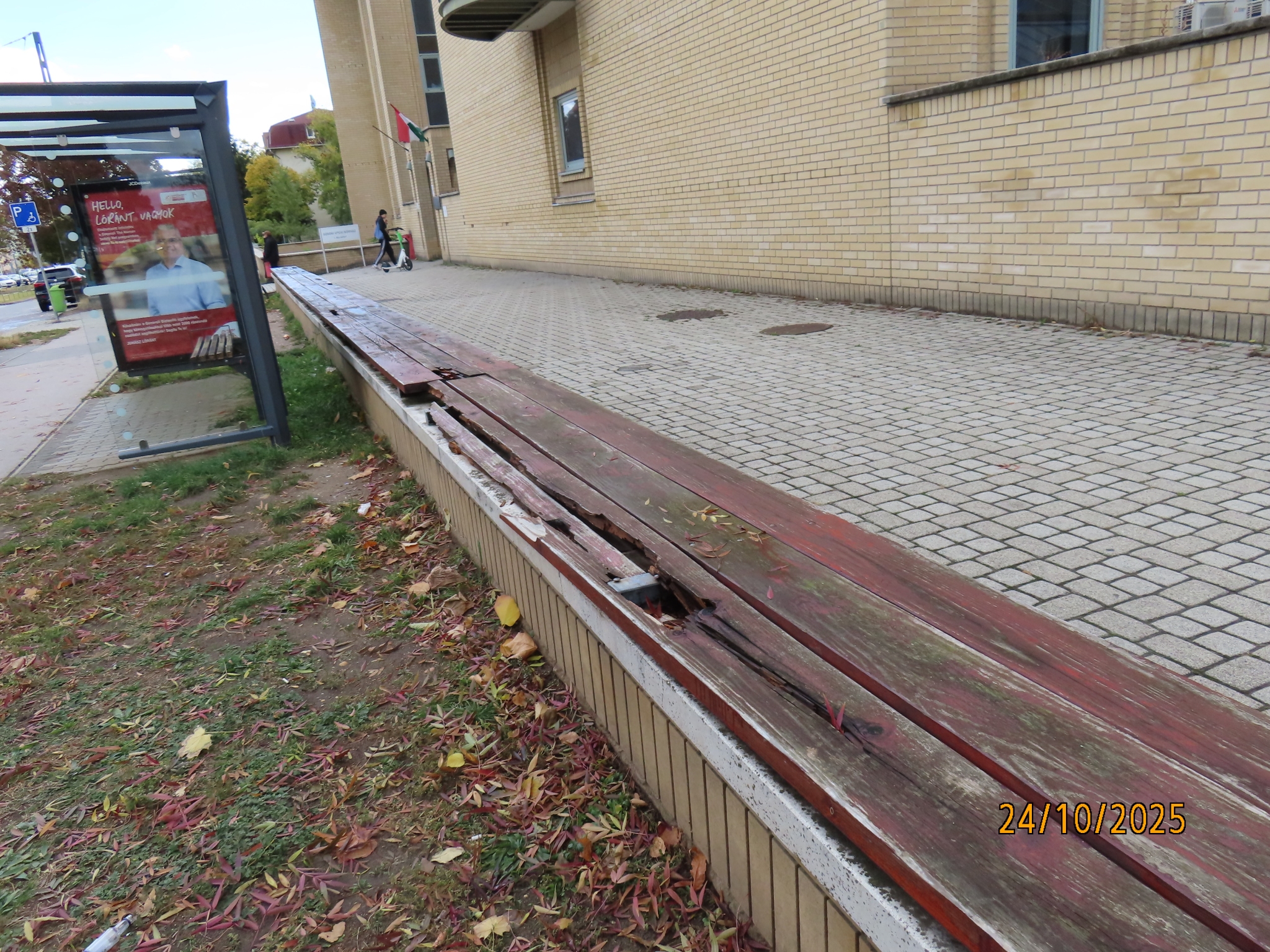 XIV. ker Róna utca Uzsoki kórház előtt a 82-es troli megállójában nem szabad leülni! Hónapok óta nagy darabokban hasadnak szét a deszkák, azokat nem távolítják el, de nem is cserélik. Betegek, öregek törött, gipszelt lábbal, kismamák várakoznak trolira és hozzátartozójukra, mentőre... és sajnos dohányozni is kiültek, amig lehetett. Már nem lehet. Sürgősen javítani kell.