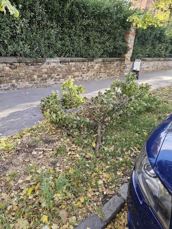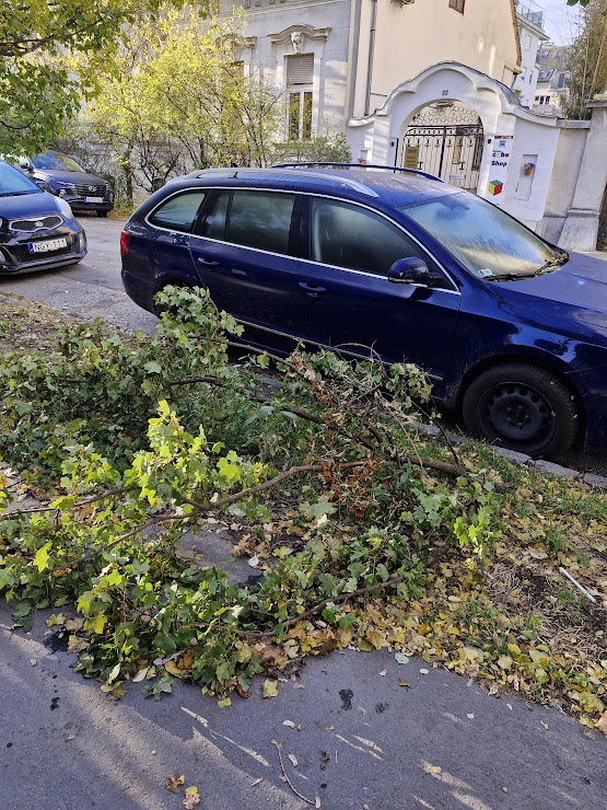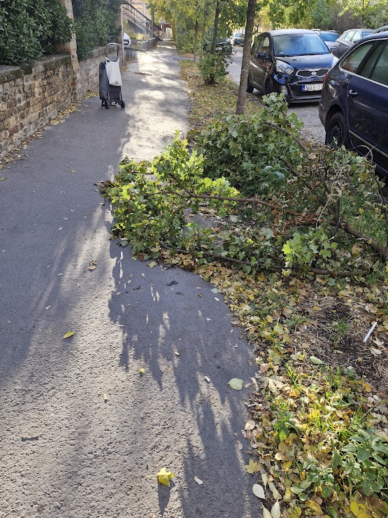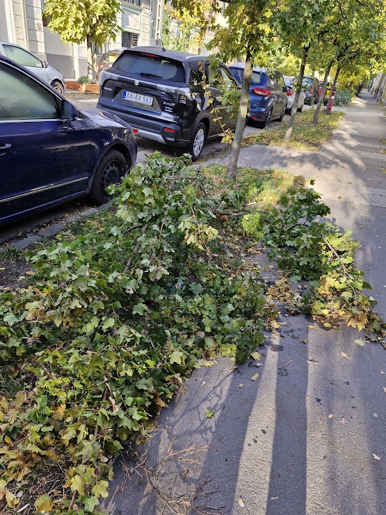 Nagyméretű zöldhulladék, letört faágak az Angol utca 79 szám előtt. Kérjük az elszállítást.