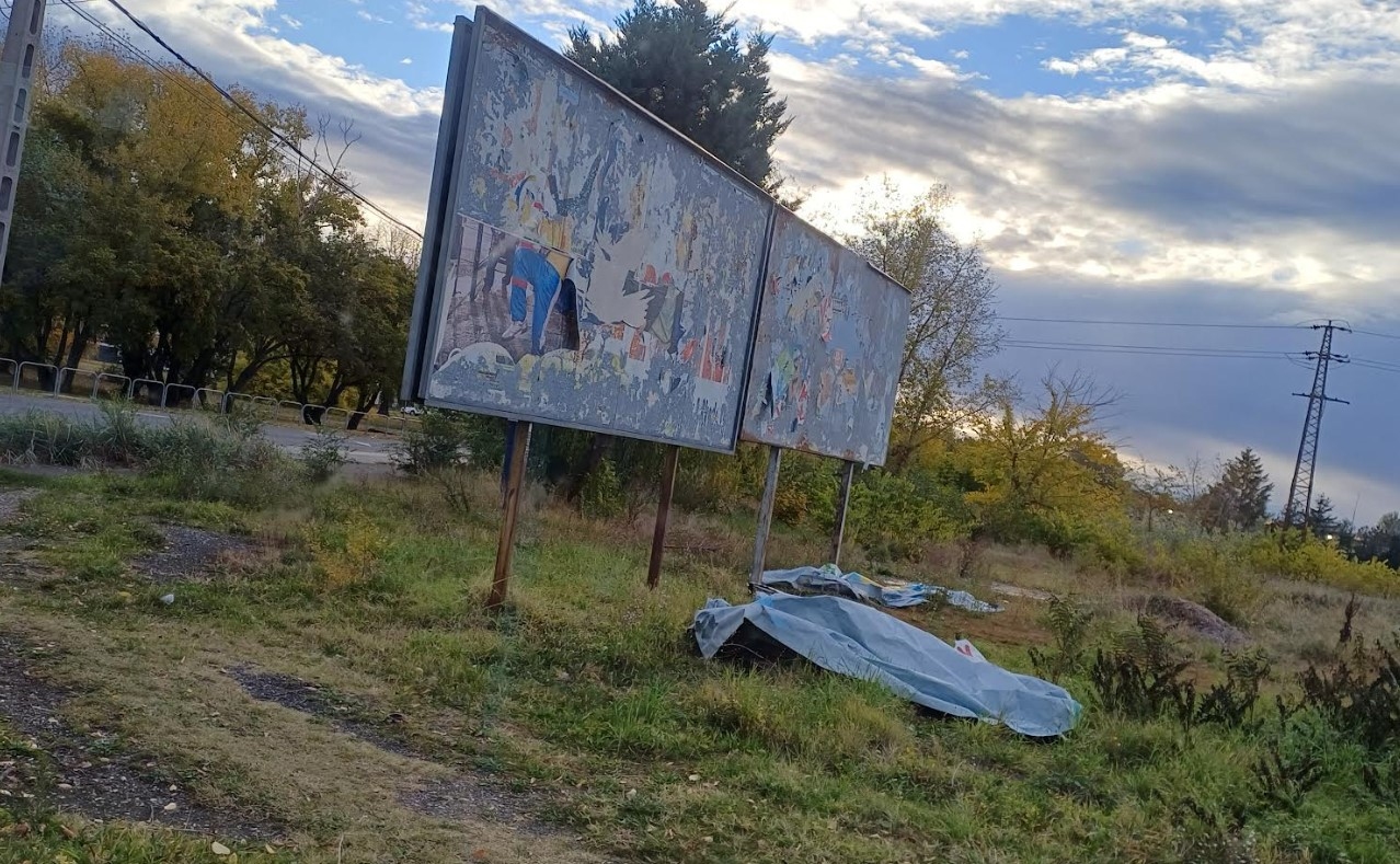A hétvégi erős szél leszaggatta a plakátokat, illetve korábbról a plakátos cég az általuk leszedett plakátokat gondosan összehajtogatva az állvány alatt felejtette.