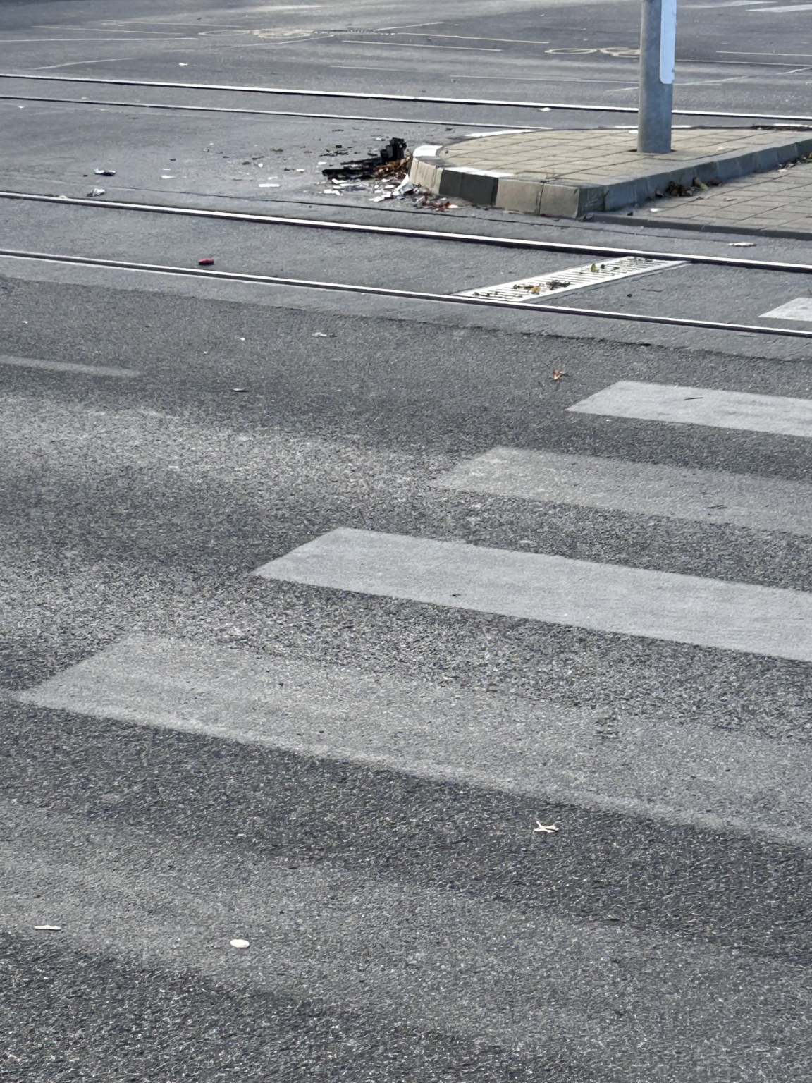 Az 1-es villamos Bikás park megállójánál egy baleset után ott maradt a törmelék a peron végén. Kérem az illetékest, hogy takarítsa fel.