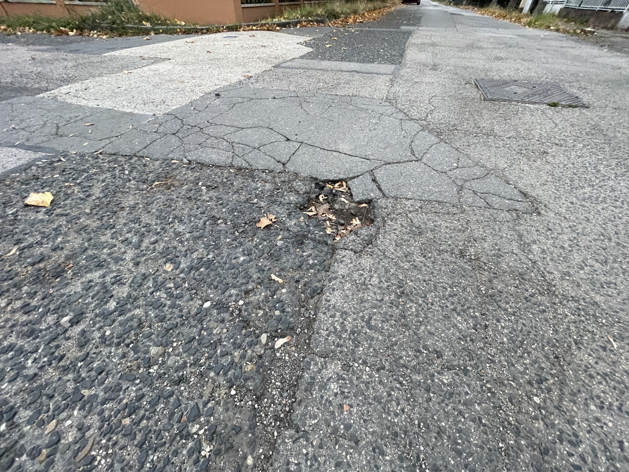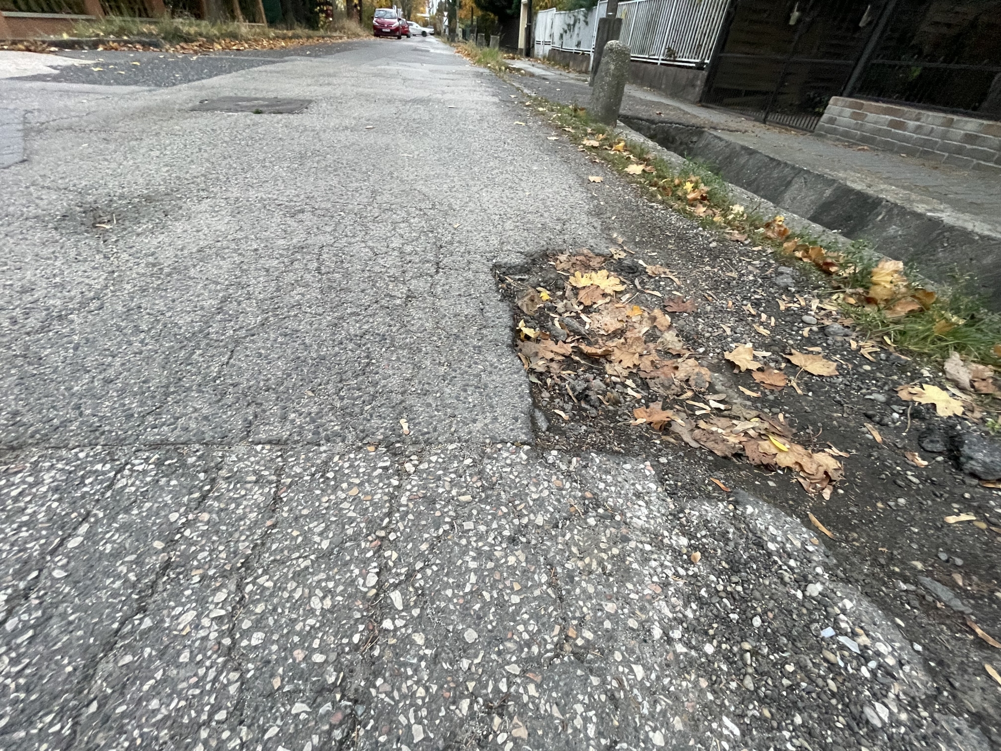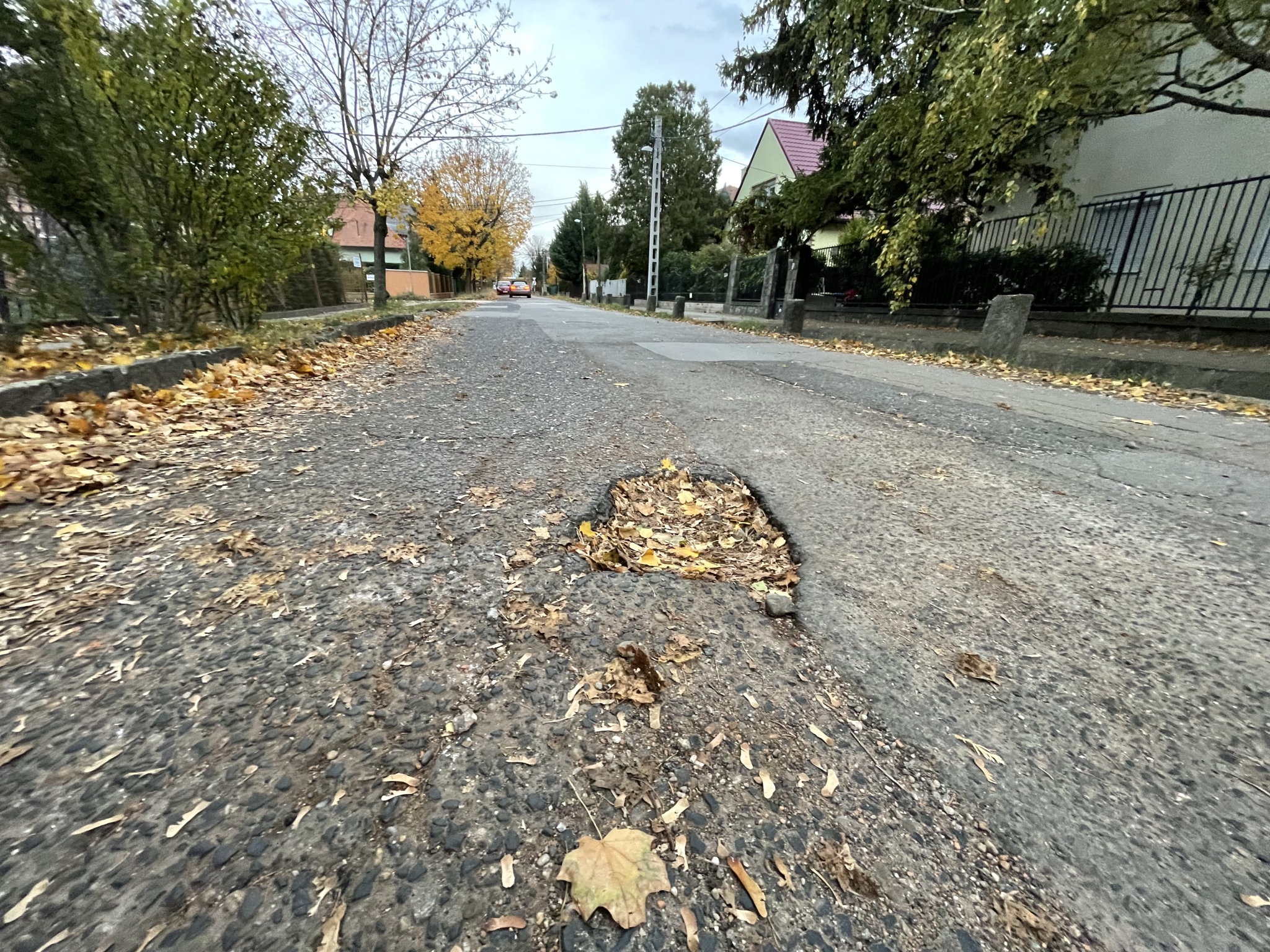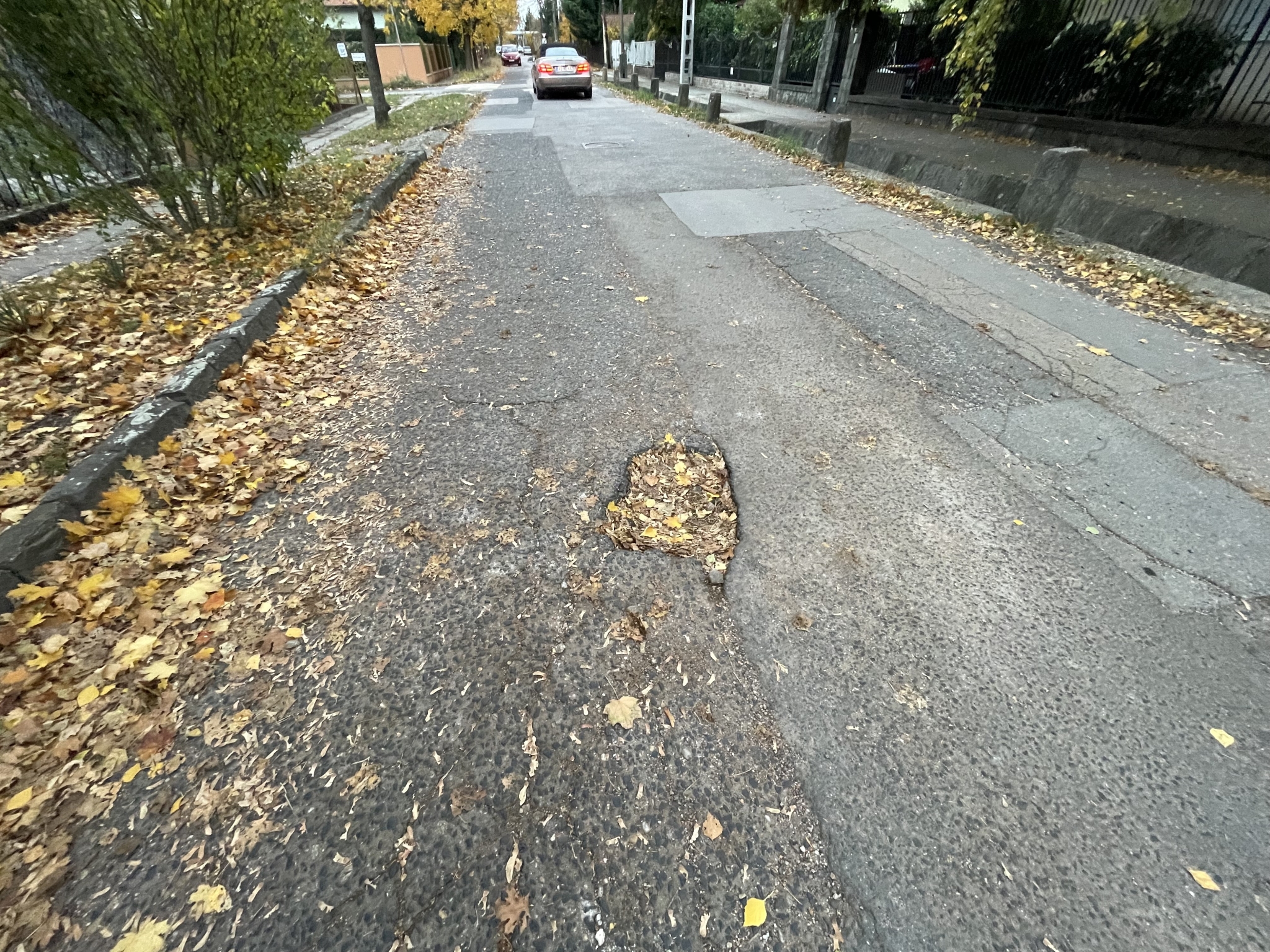 Budapest 3. Kerület Kert sor 12-22 mellékutca szakaszon 4 kátyú van kerék nyomsávban hónapok óta.