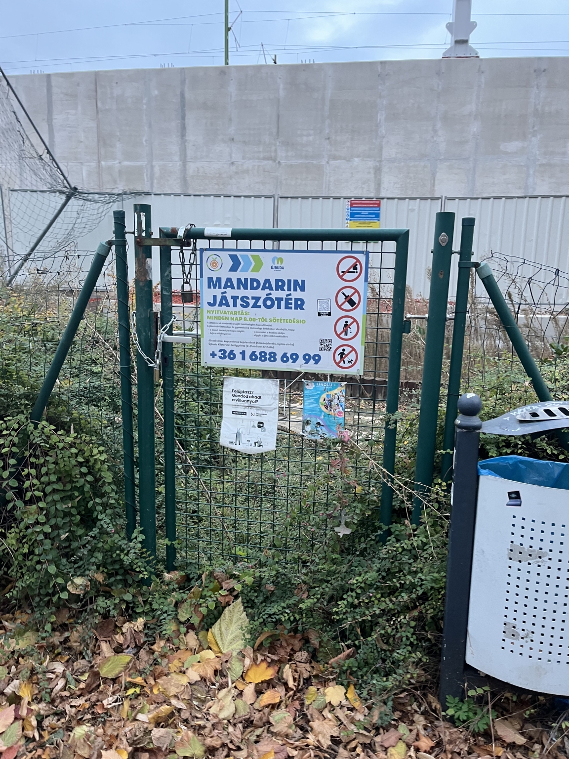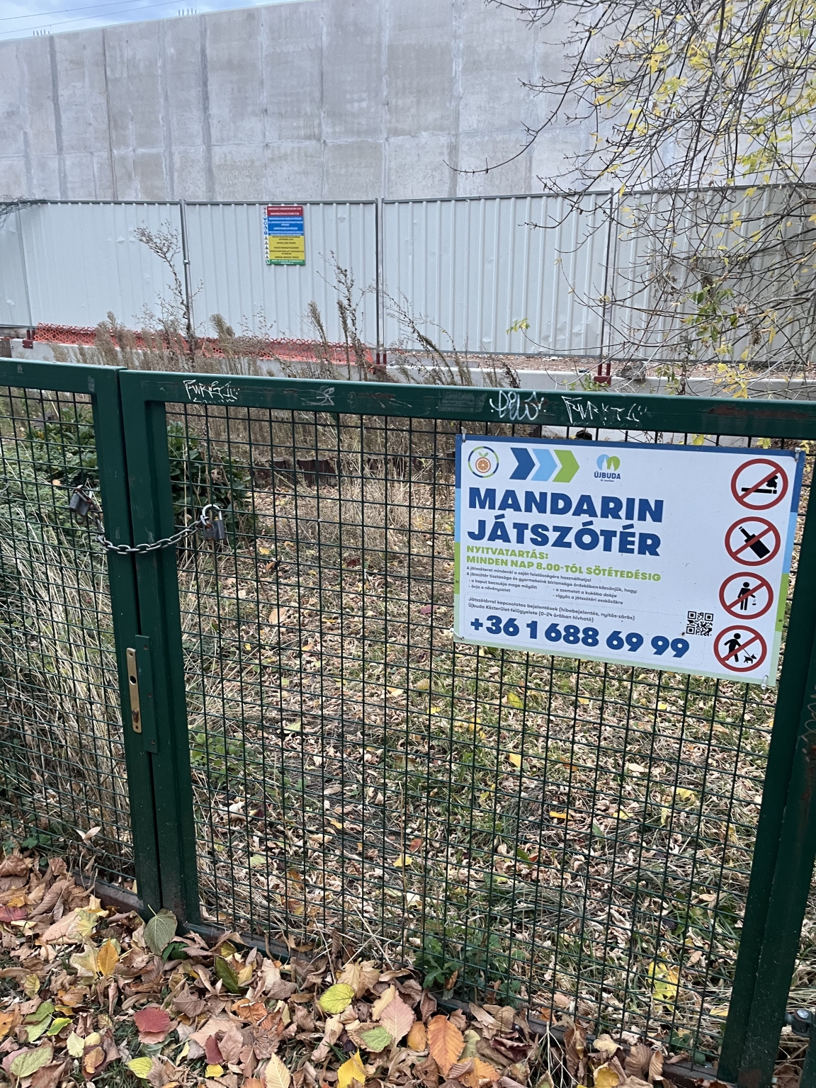 A XI. kerületi Hamzsabégi út mellett lévő vasúti töltés mellett található a Mandarin játszótér, borzasztó gusztustalan állapotban. Tele van gazzal, össze van gragfitizve, a játékok állapota is szörnyű(nem mintha be lehetne menni velük játszani) sok kisgyerekes sétál erre, pár éve aktívan működött, szerették az itt lakók, mára wc… gusztustalan. Jó lenne, ha lehetne használni, hálásak lennénk, ha szép állapotban lenne.