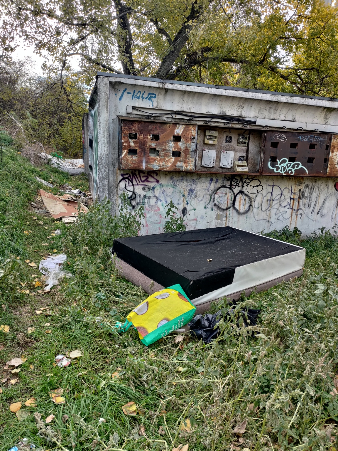 Szemét a vasúti aluljáró mellett a Tábornok út-Francia út sarkán. Elvileg MÁV illetékességű terület.