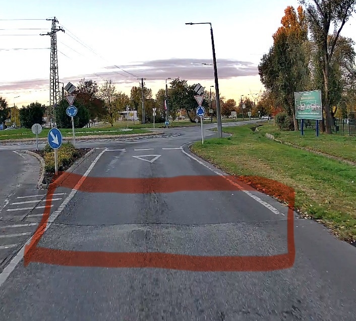 Hosszan megsüllyedt, folyamatosan repedező út.