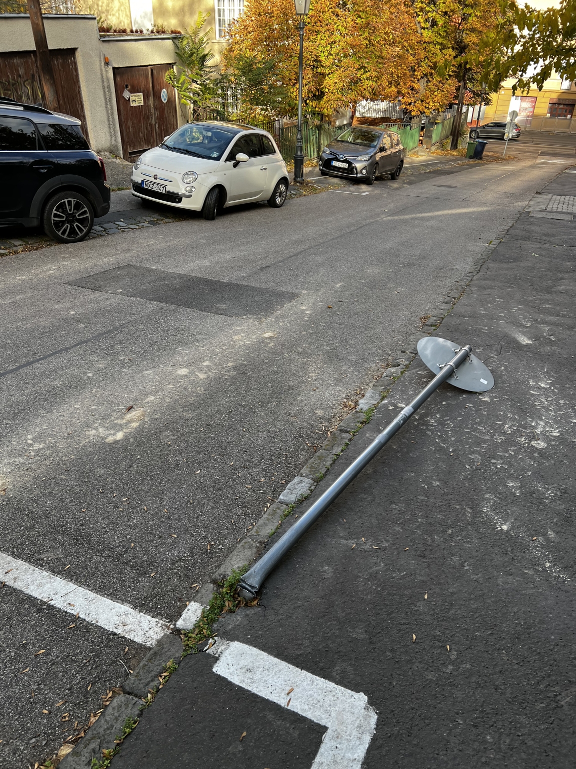 Először csak elferdült majd teljesen kidöntötte valaki mára ez a megállni tilos táblát