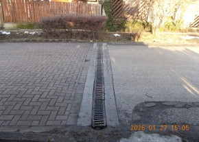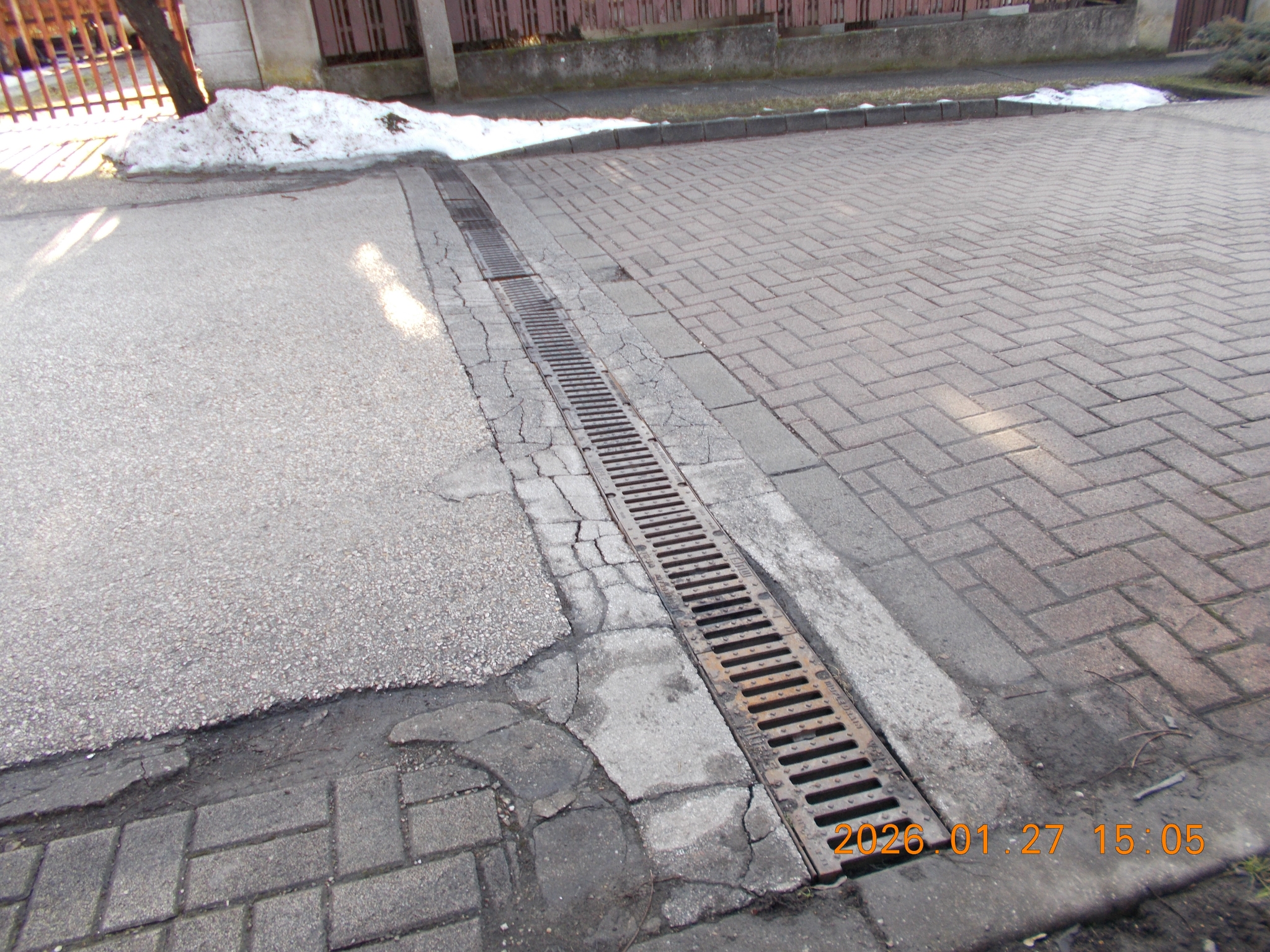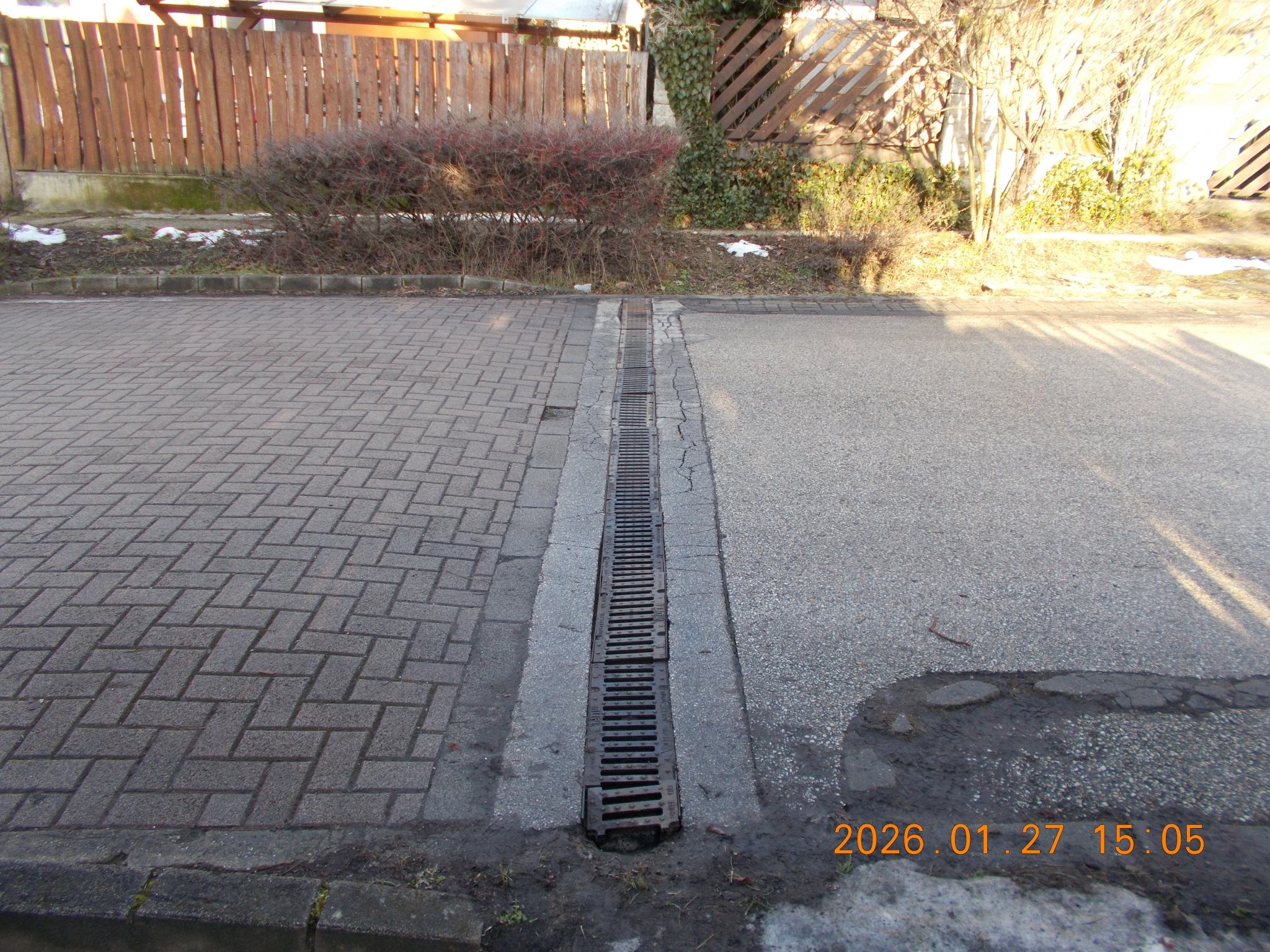Kérem az illetékest, hogy a képen látható esővíz-elvezető folyókát legyenek kedvesek kitisztítani!