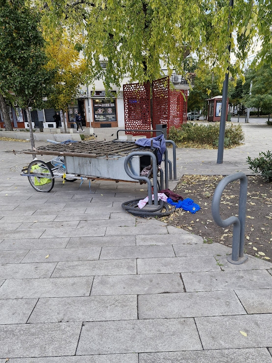 Róna/Thököly sarkán, közparkban, biciklitárolóban hónapok óta áll ez a valami. Változó méretű és összetételű hulladékkal megpakolva.