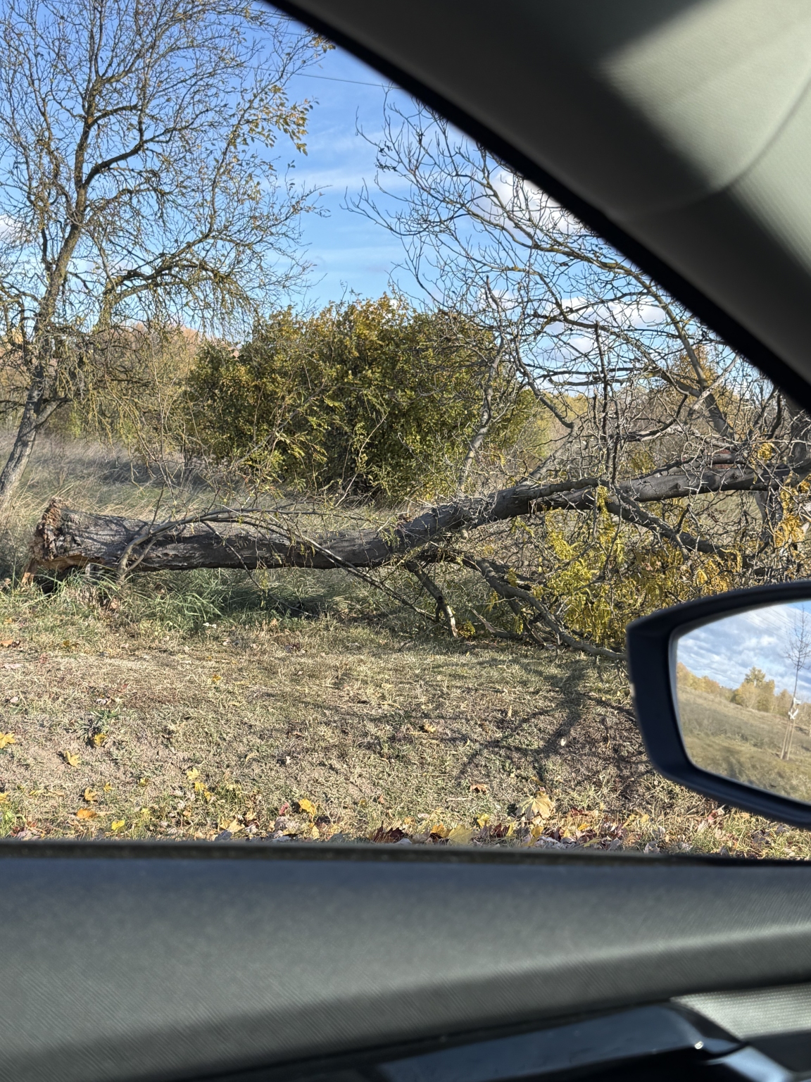 A nagy szèl után a BP 16 kerület Nógrádveröce út 57 környékén a mező felöli oldalon kicsavart egy fát.