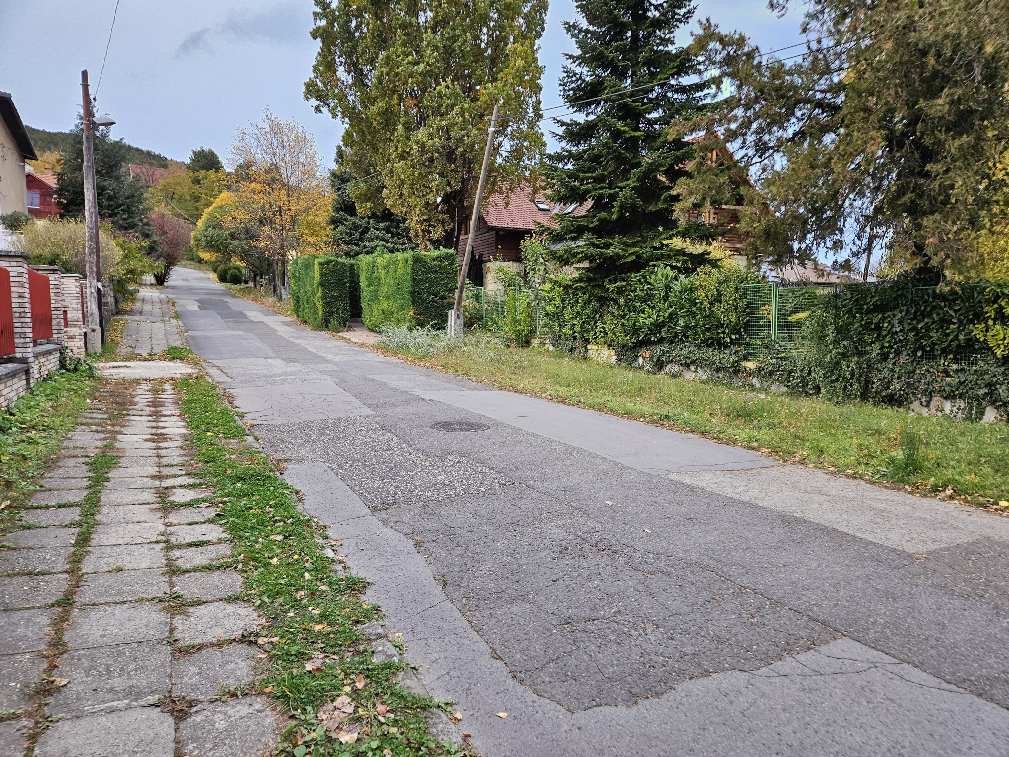 A Rókavár utca végén lévő villanyoszlop eléggé meg van dőlve. Valószínűleg a fák ágai húzzák a vezetéket.