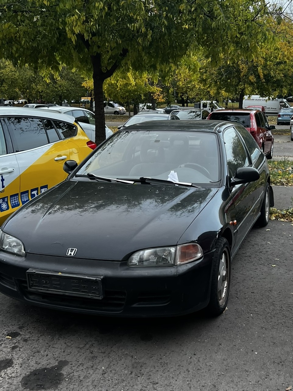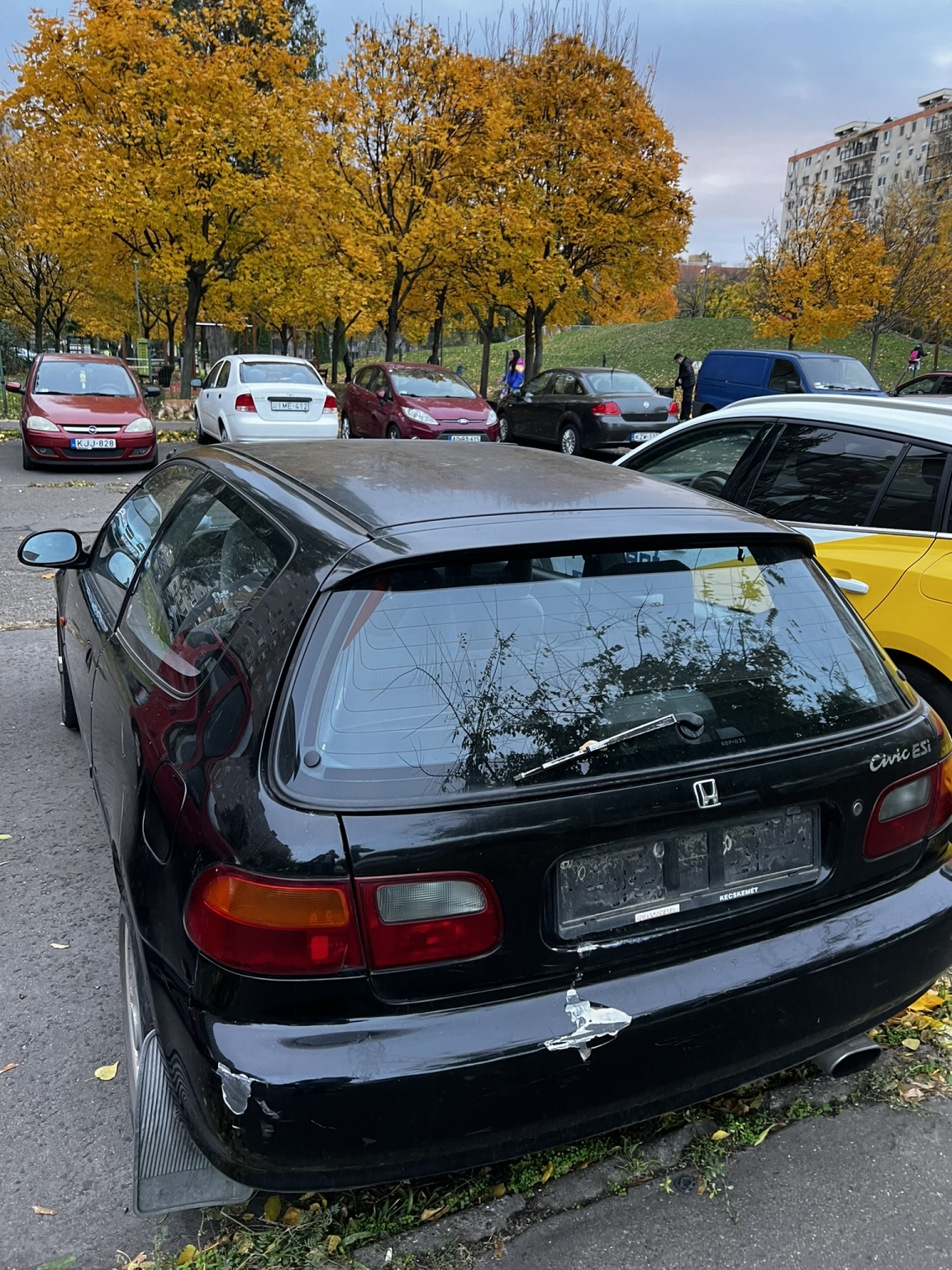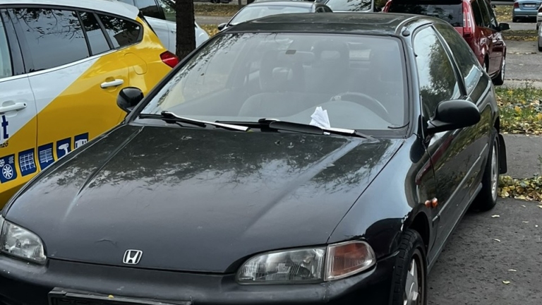 Rendszám nélküli fekete Honda autó foglalja a parkolót a 1195. Nagysándor József u. és a Kispesti nagyjátszótér sarkán.