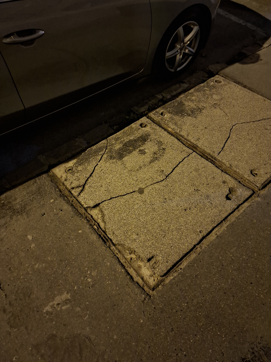 A Rózsa utca 62 előtt van egy botlásveszélyes fedlap. Kérem javítsák!