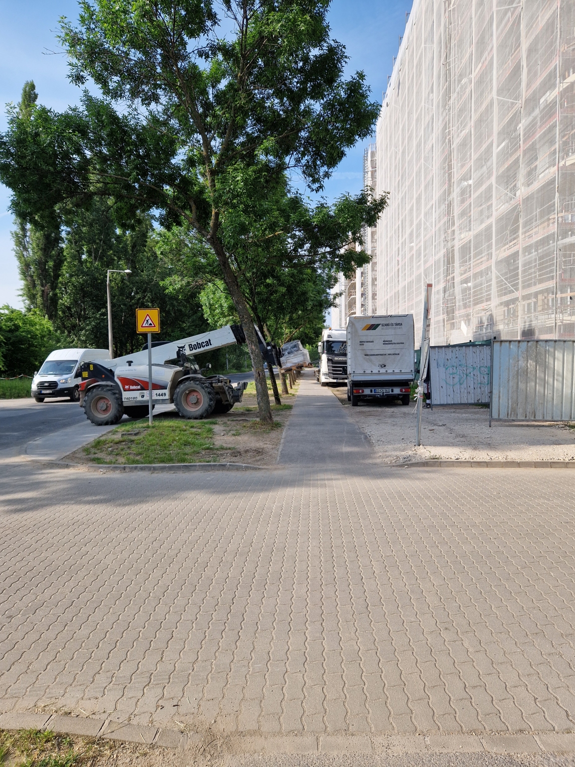 A Cserhalom utca a folyamatban lévőépület és a közterületi átépítés alatt sem gyalogosan, sem kerékpárral nem közlekedhető. Az eljáró közterületfelügyelő szerint a "forgalomtechnika hiányos". Gomba módra nőnek a lekerítések, tiltó táblák, a forgalom terelésére jól láthatóan nincs terv.