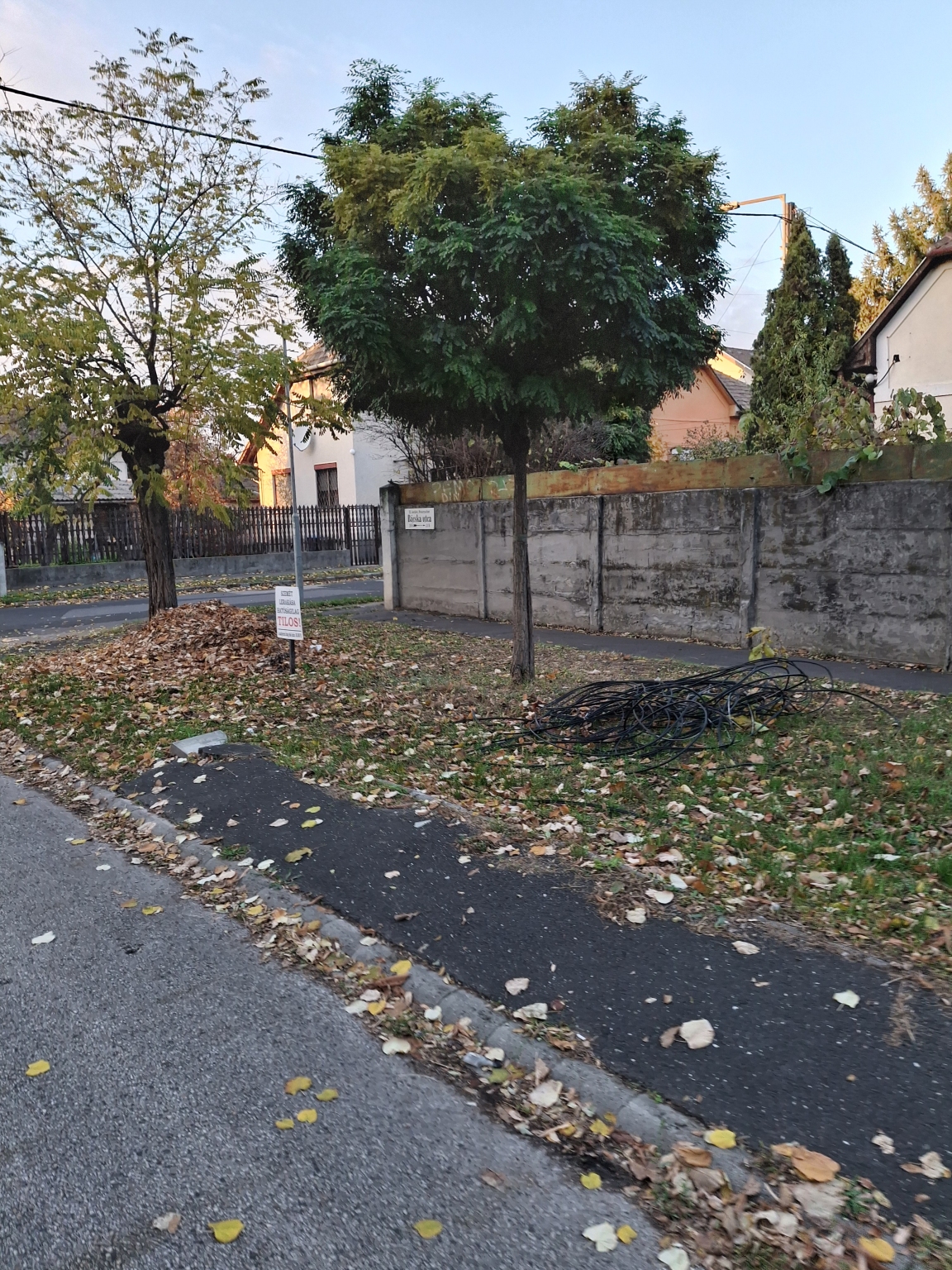 Egy hatalmas halom szaraz levél, ami naponta növekszik és mellette kidobott kabel. Pesterzsébeten Bacska u es Magyar u. sarok. Van kamera is de vajon minek?