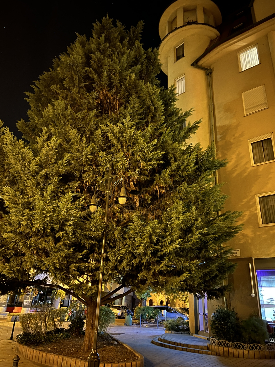 Kiégett lámpa a Leonardo hotel sarkánál.