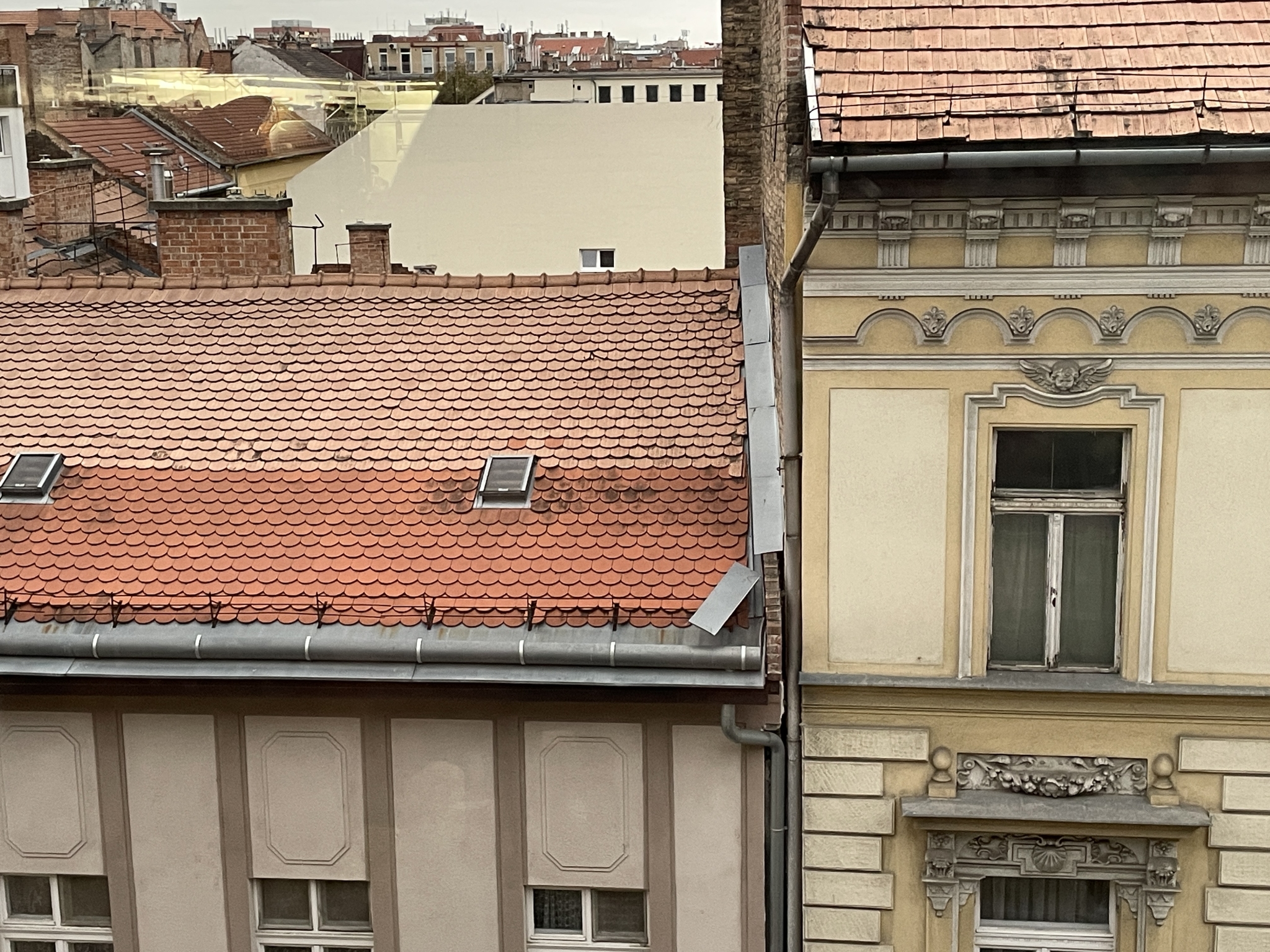 Szel lefujt egy elemet a tetőről es barmikor leeshet az utcara.
