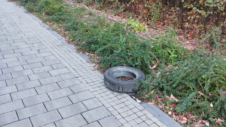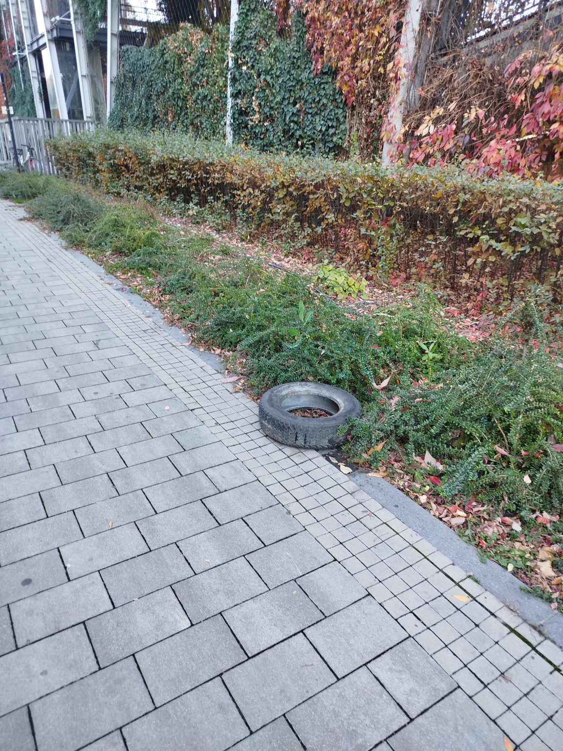 Elhagyott kerékgumi a Millenáris és a Mammut közötti sétányon. Köszönjük, hogy elviszik.