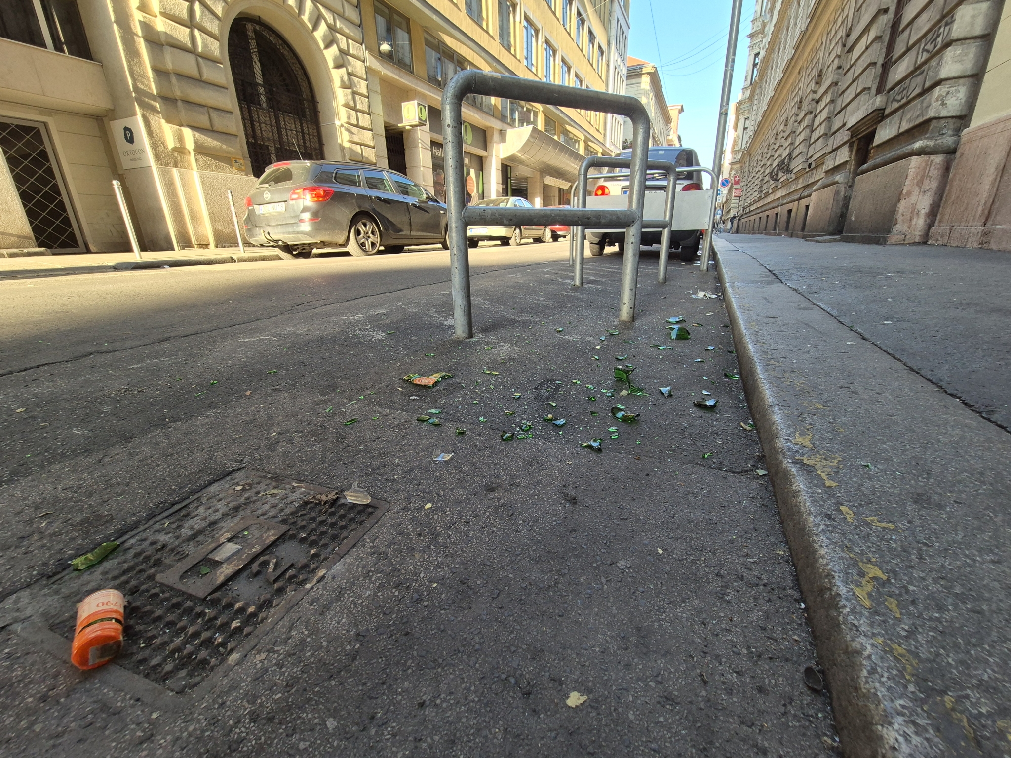 Az Aradi utca - Nagykörúthoz közeli részén pont egy bicajtámaszos részen tele van üvegszilánkkal. Kérem az illetékeseket a takarításra.
