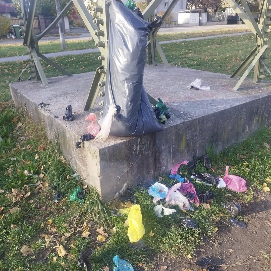 A patakpart ezen oldalán nincs kuka és/vagy kutyaürülék gyűjtő ezért így van itt gyűjtve a szemét és a kutyaürülék. Nem túl guszta.