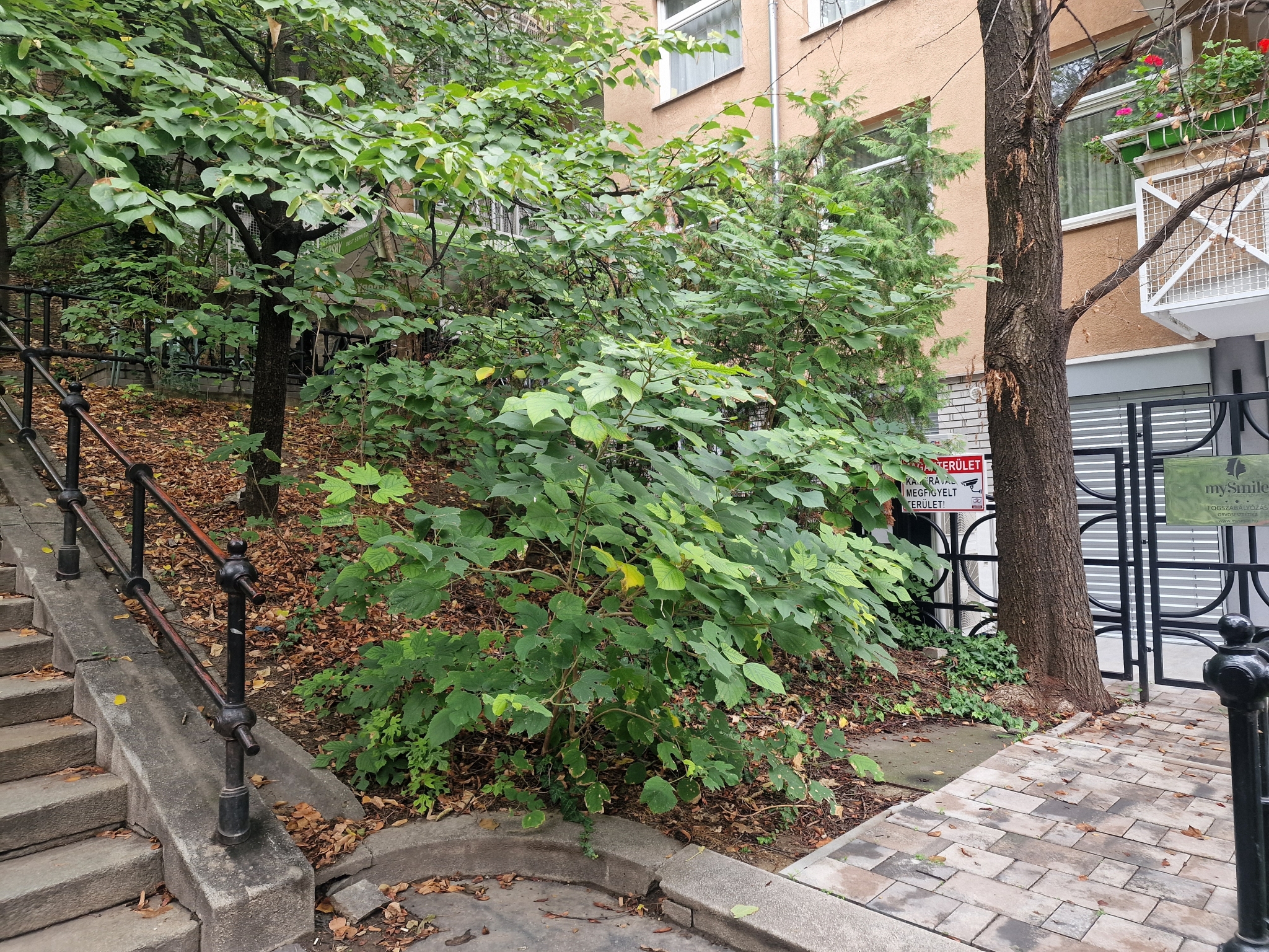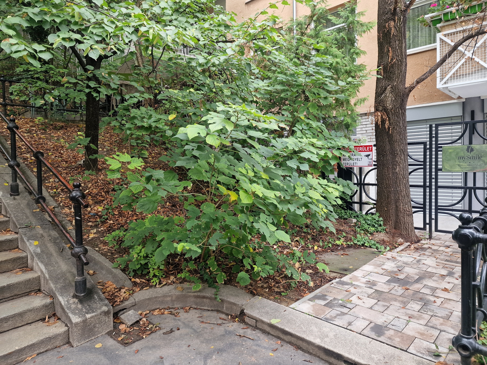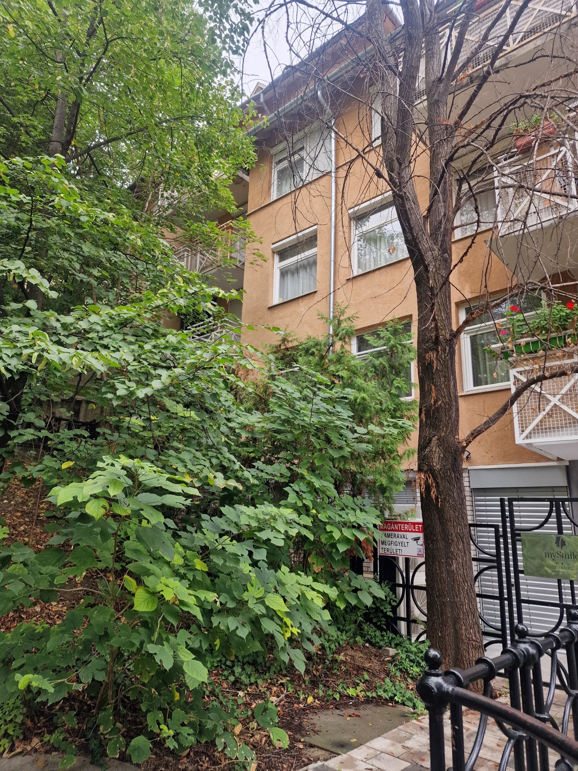A fa évek óta halott, ki kellene vágni. A Gránit lépcső mellett, a Tábor u. 5. társasház Gránit lépcső felöli fogorvosi rendelő bejáratánál, a kerítésen kívül, az utcán.